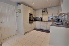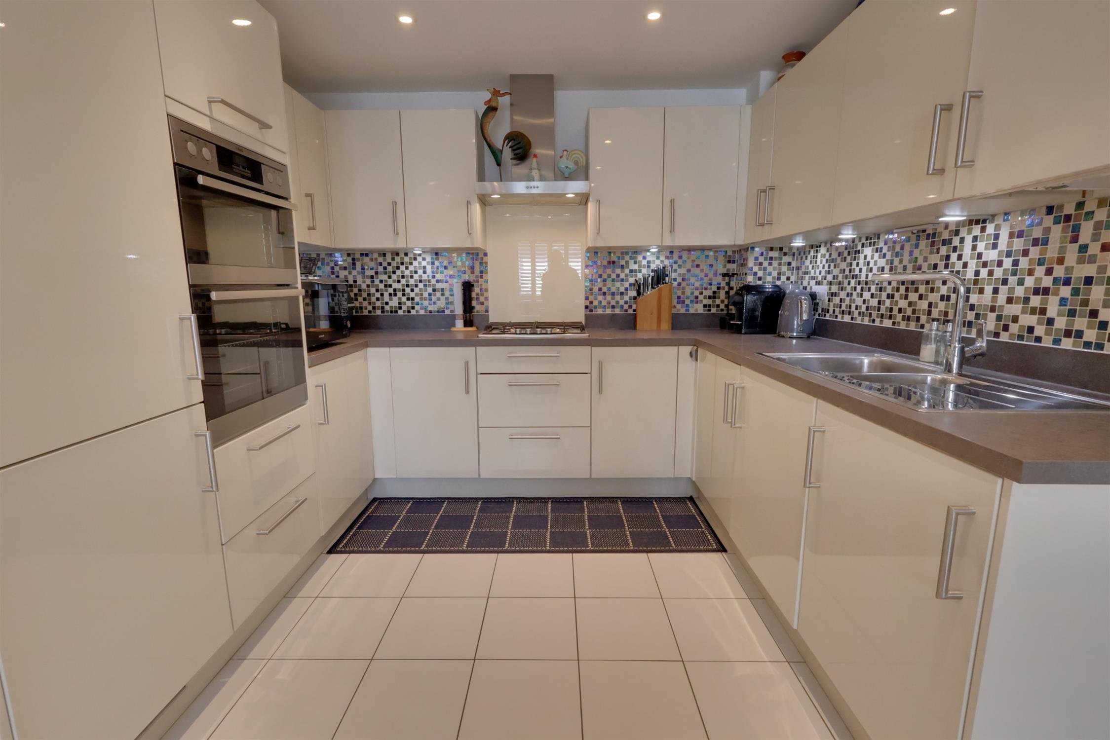 Attractive open plan room with double glazed square bay to front. Extensive range of fitted floor and wall units with contrasting work surfaces and complimentary tiling to walls. Stainless steel one and half bowl sink unit. Range of integrated appliances to include four ring gas hob with extractor hood over. Eye level double oven. Dishwasher and automatic washing machine. Radiator. Double glazed door to side access.