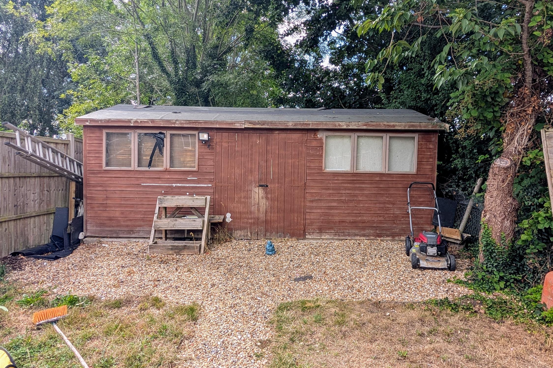 The generous rear garden measures in excess of 100ft and has a large patio area adjacent to the property. The majority of the garden can be found mainly laid to lawn and has a central gravel path running the length of the garden. There are numerous garden stores including a large timber store which is located at the end of the garden. The garden is fence enclosed and has an outside water tap and gated side pedestrian access.