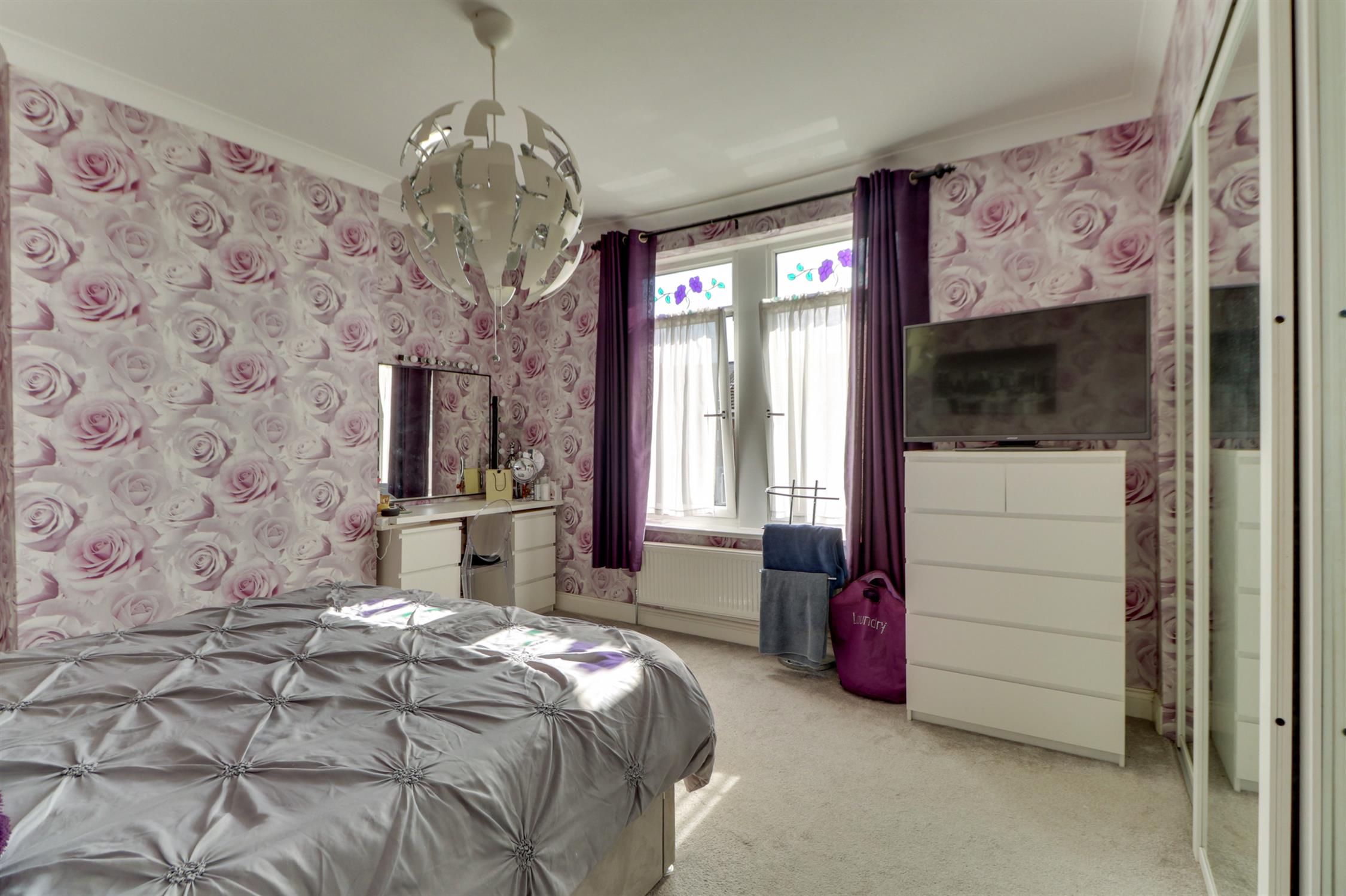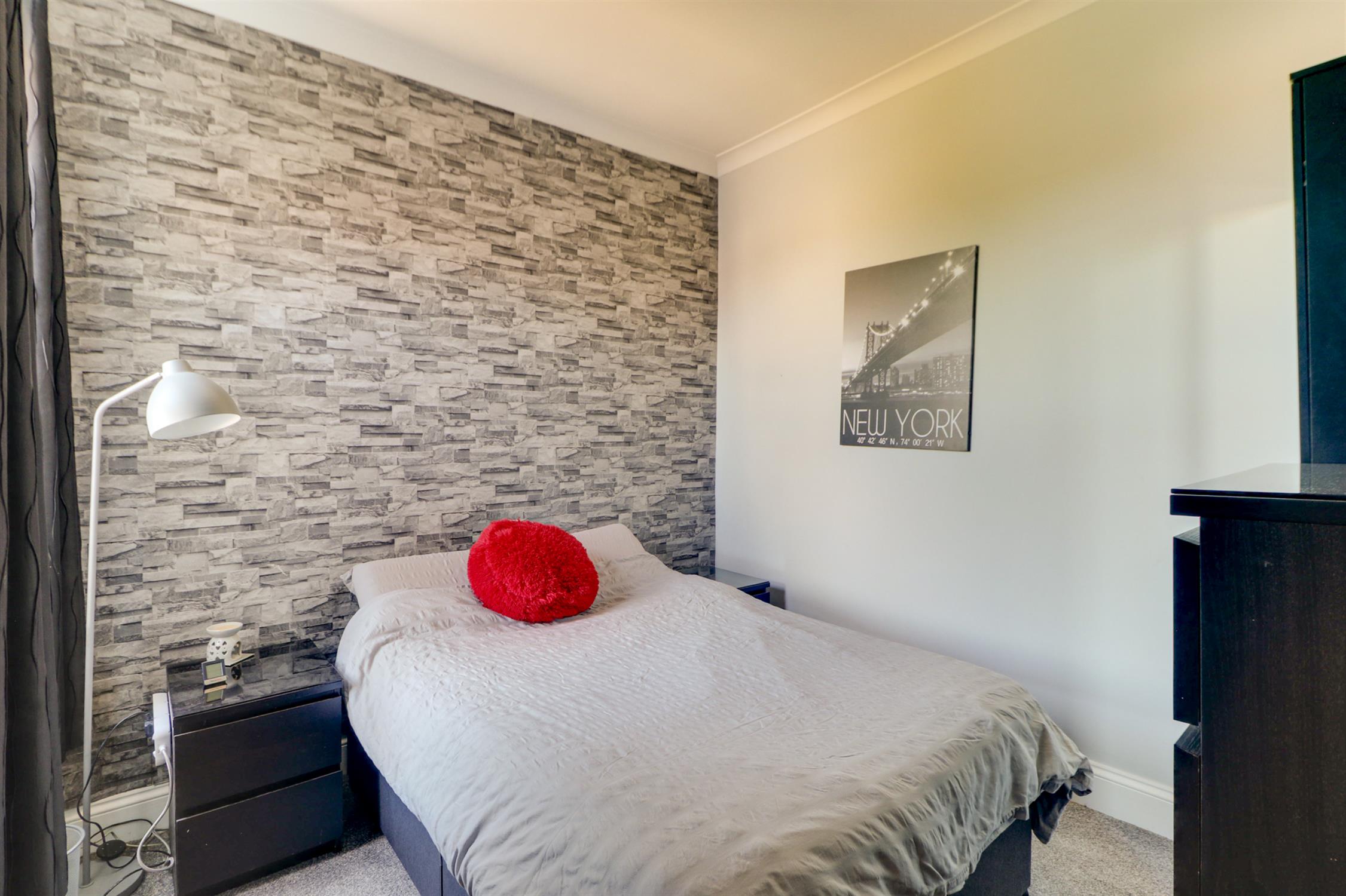Smooth and coved ceiling, UPVC double-glazed window, radiator and fitted carpet.