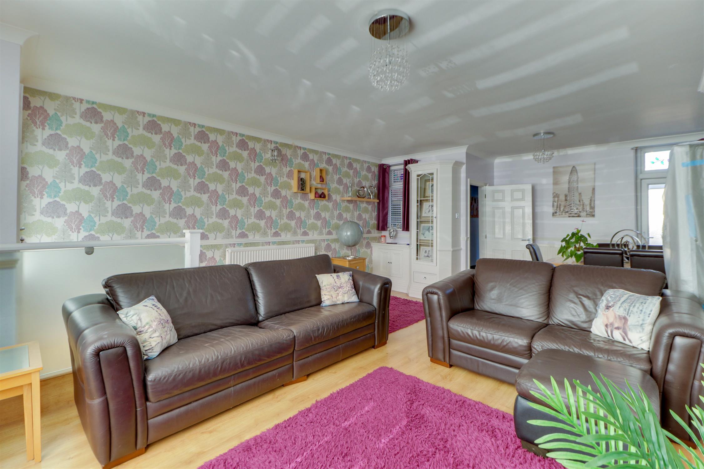 Sold with no forward chain, this generously proportioned four-bedroom end-of-terrace home is ideal for a growing family, combining spacious living accomodation with excellent outdoor space. To the front, a private driveway provides off-road parking. Inside, the property offers versatile accommodation, including a bright bay-fronted living room - originally two separate reception rooms - creating a large, welcoming space for family life or entertaining. From the inner hall, you'll find a handy storage cupboard and stairs leading to the first-floor landing.