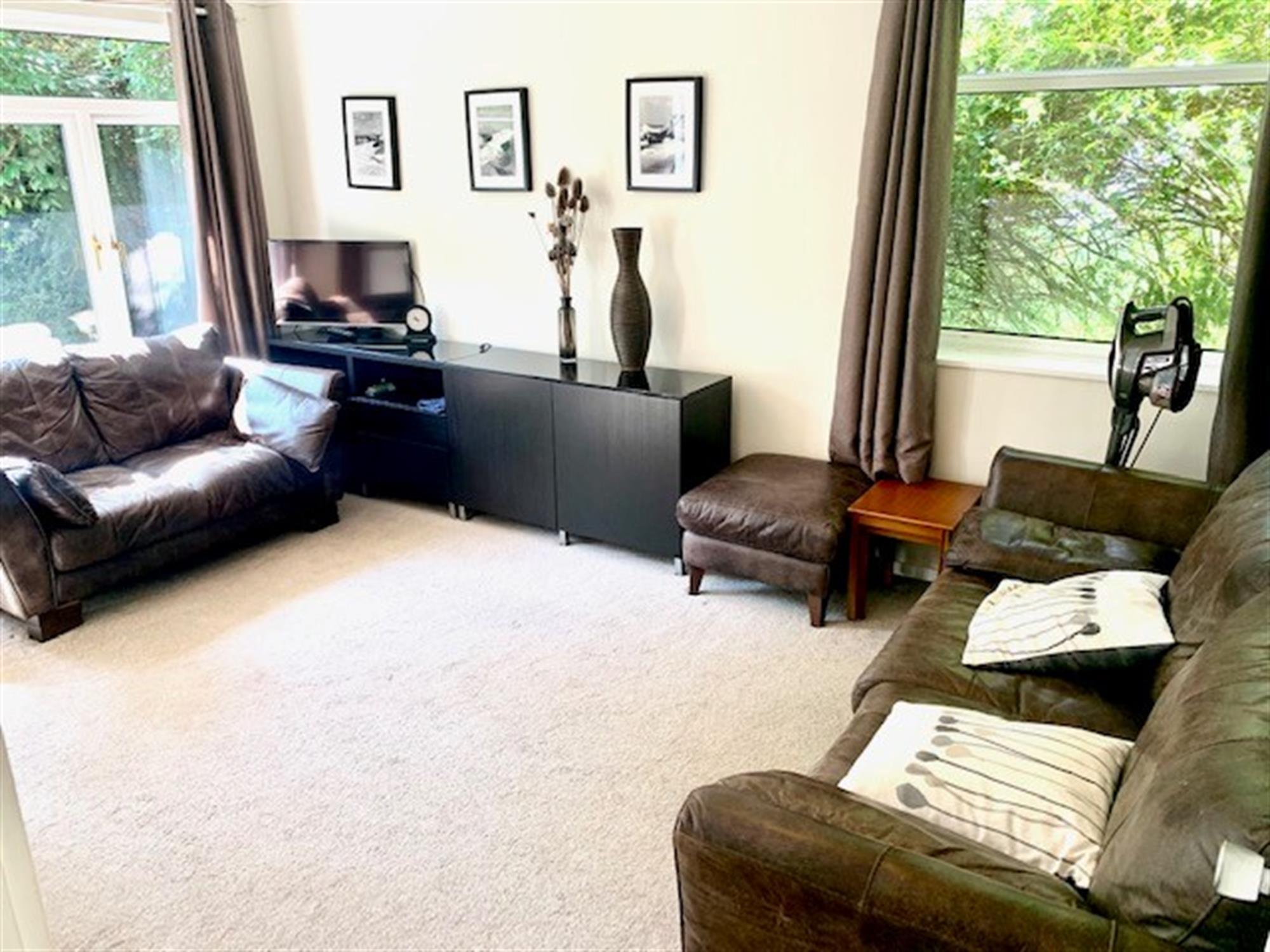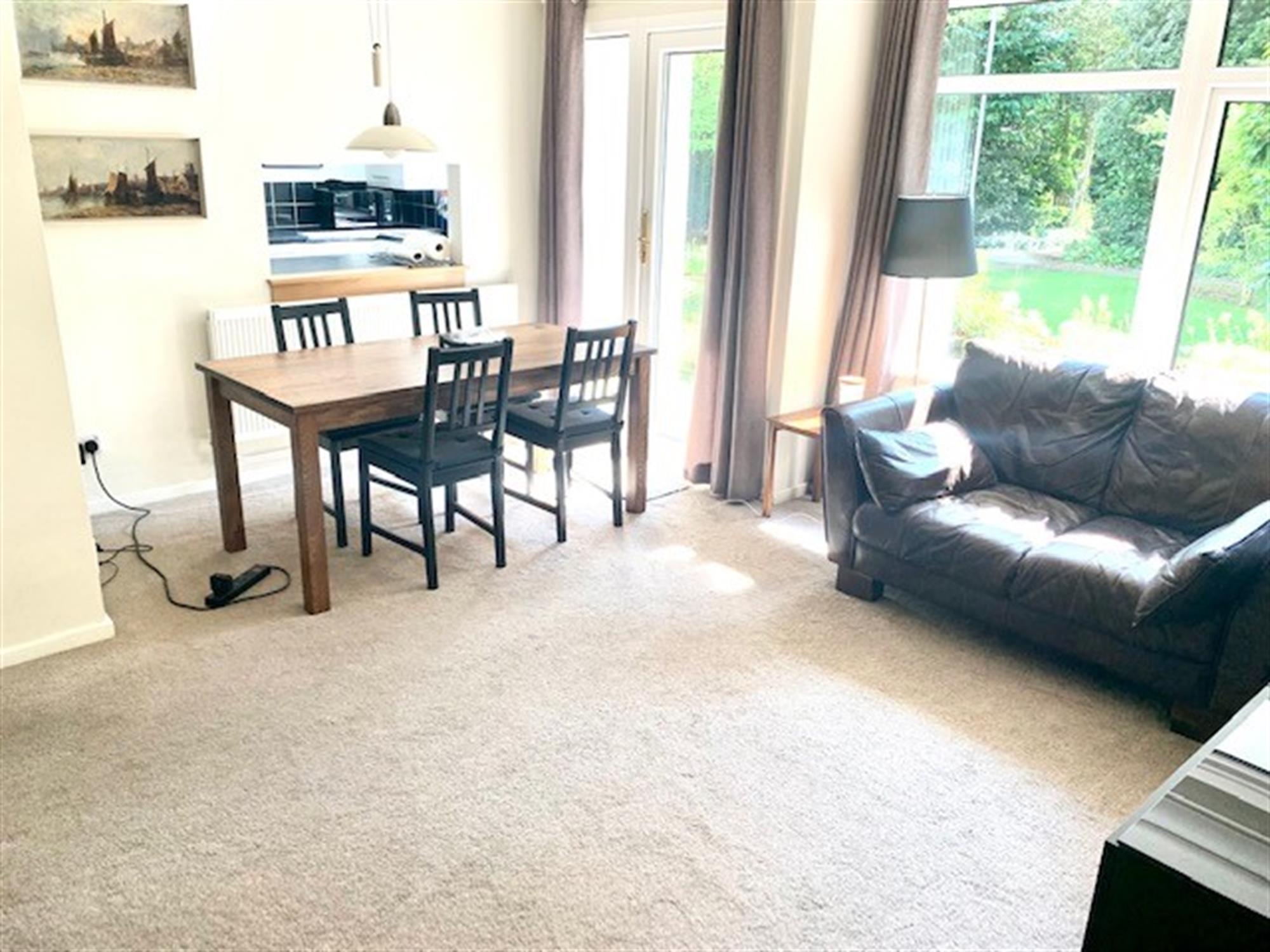 LOUNGE - Carpeted with window to side and door to patio area. Furnishings to include 2 x sofas, sideboard, table and chairs and TV.