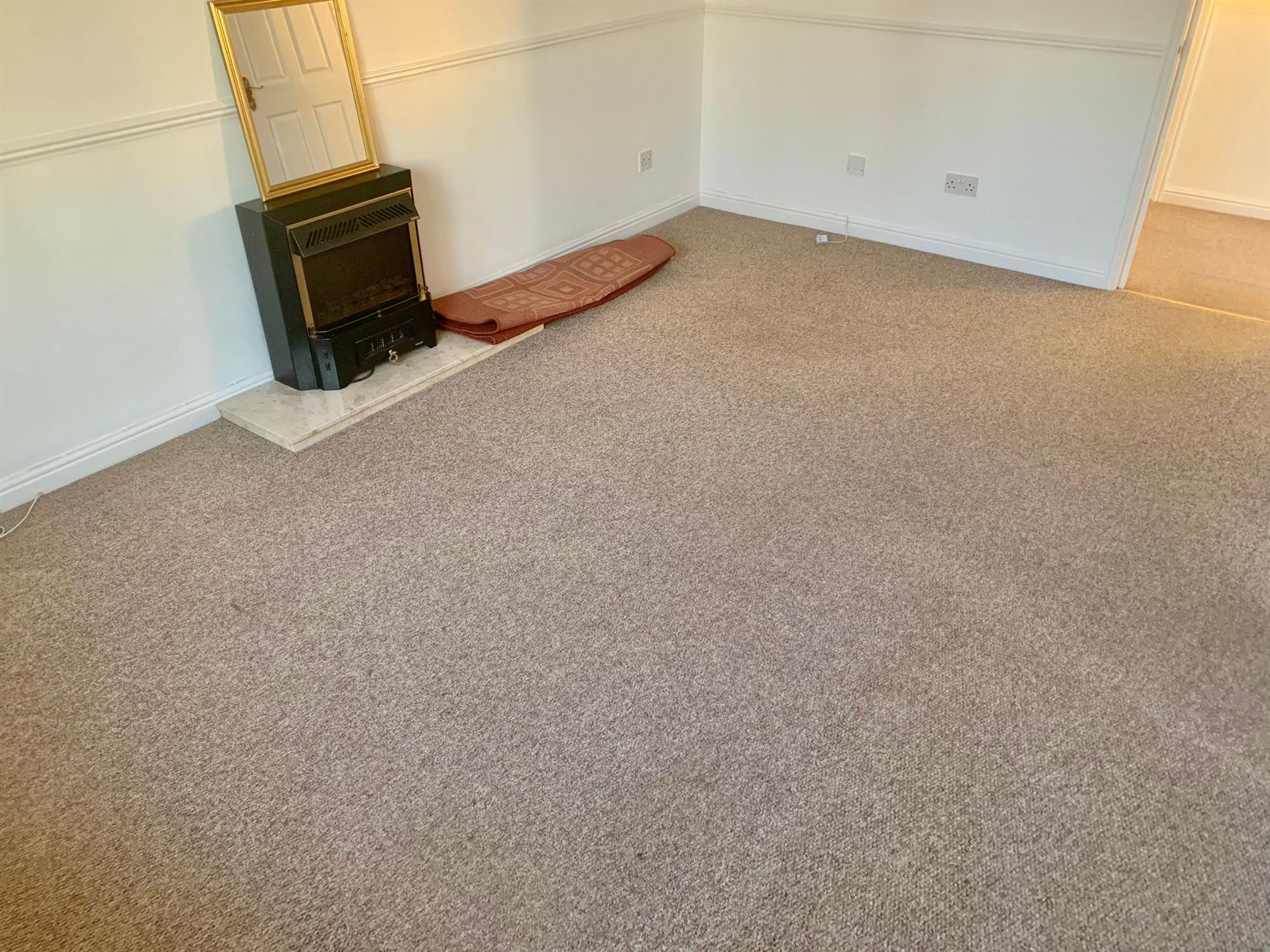 LOUNGE/DINER: Carpeted with electric fire and door to kitchen. Views over communal garden.