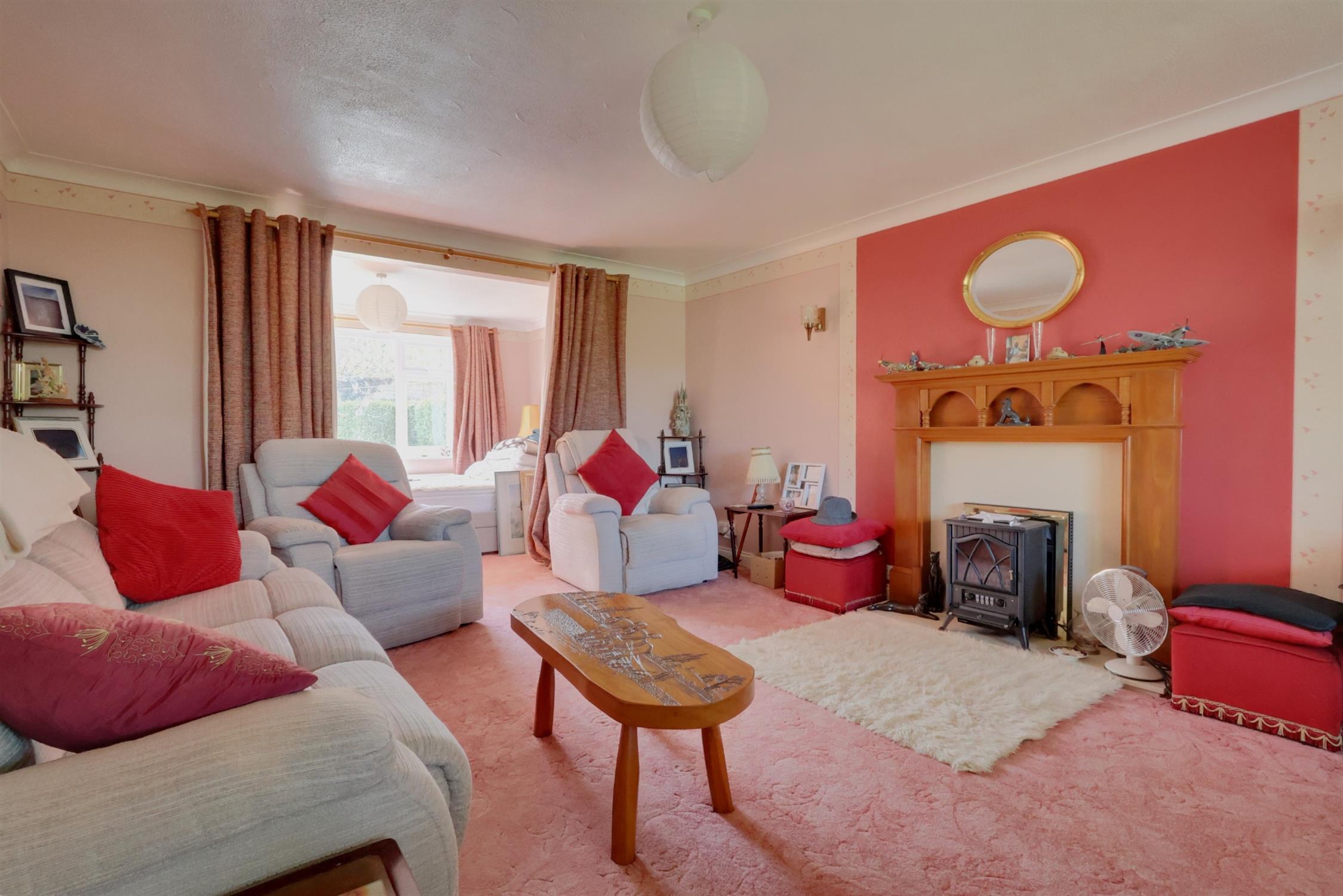 Coved ceiling. Bow fronted uPVC window. Radiator. Decorative wooden fire surround with gas coal effect fire. Opening into: