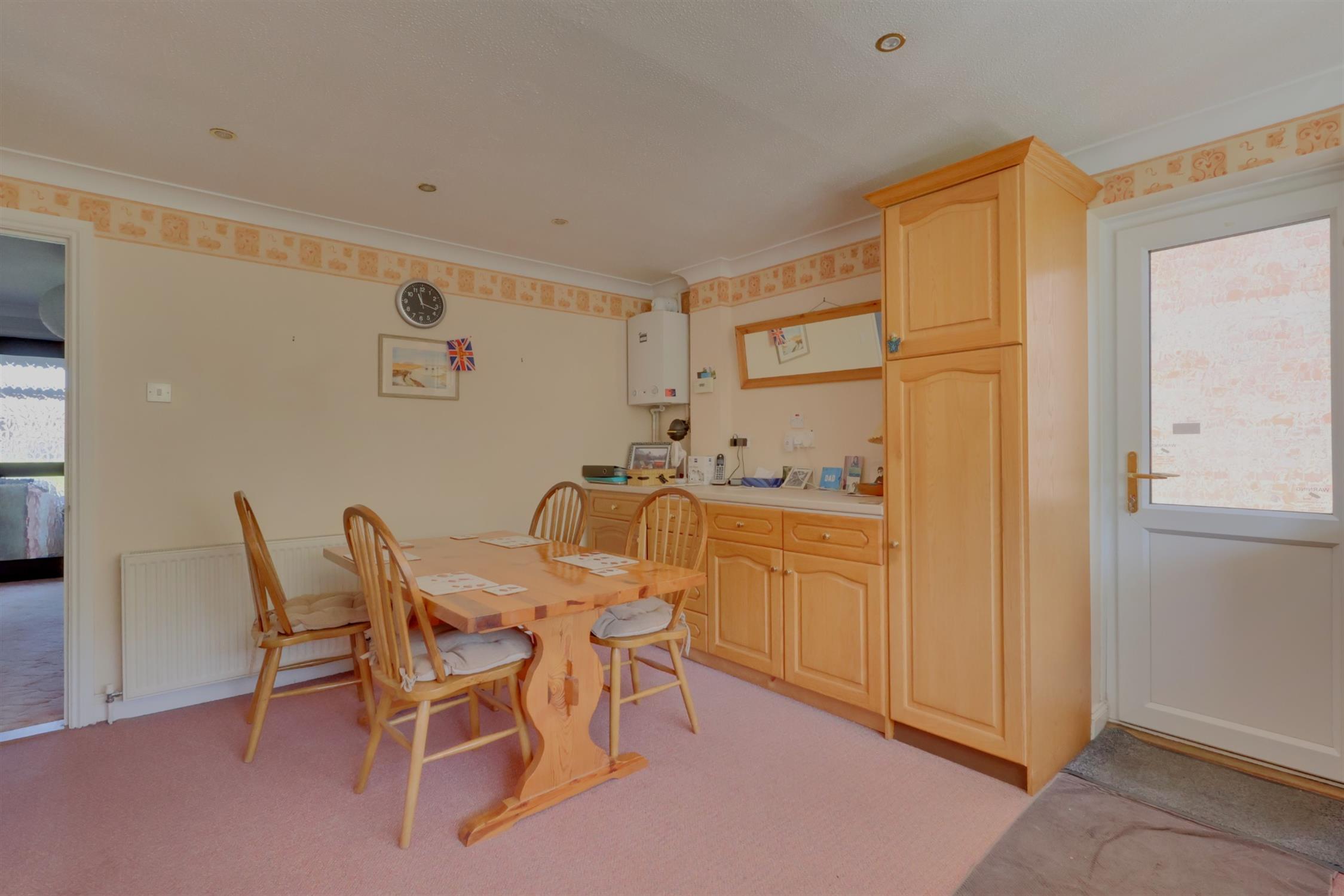 Range of modern wall, floor and drawer units with uPVC window to rear aspect and glazed door accessing rear garden. Radiator. Wall mounted gas boiler. Integrated dishwasher.