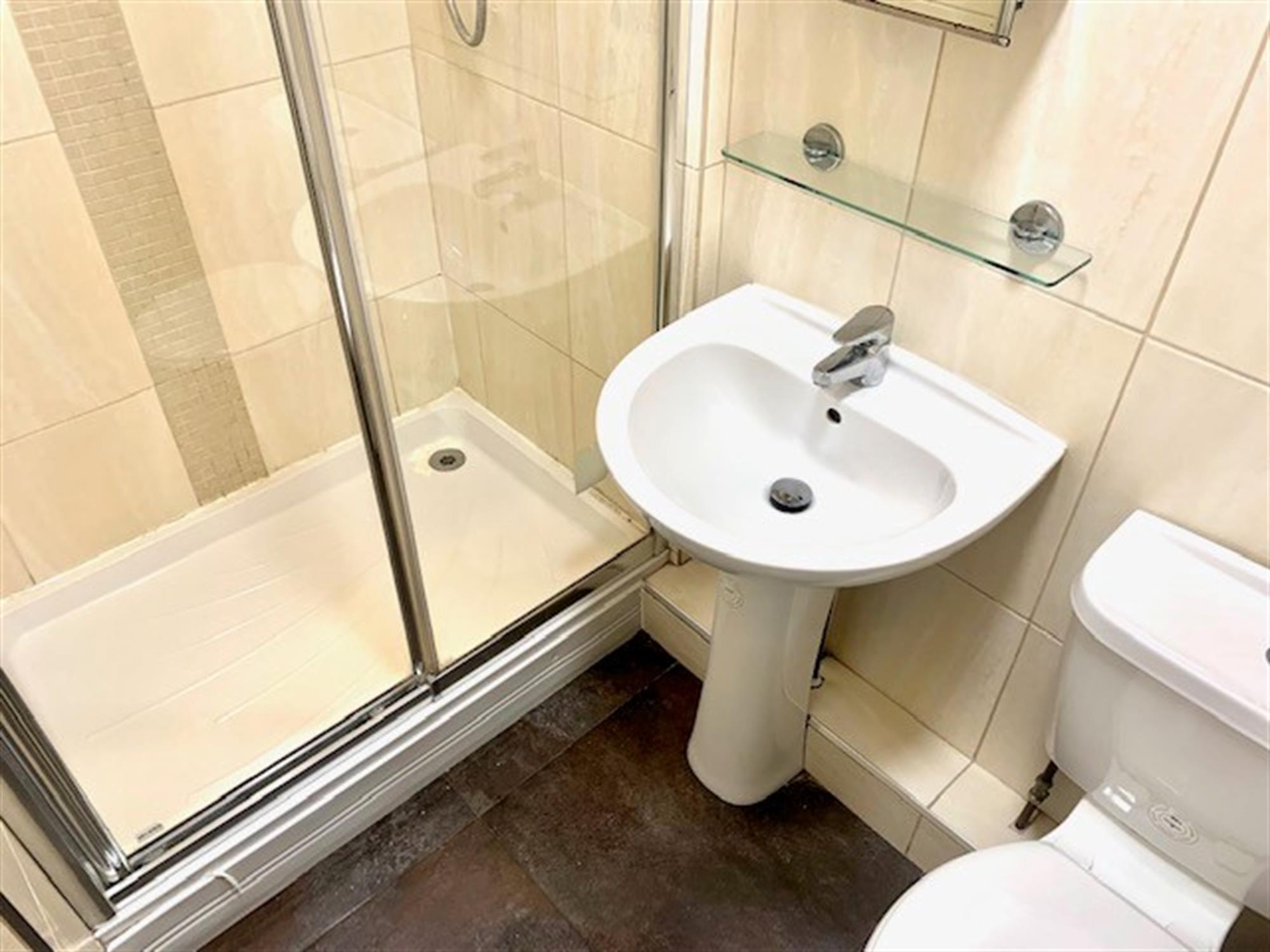 SHOWER ROOM - Wash basin, WC and double shower cubicle.
