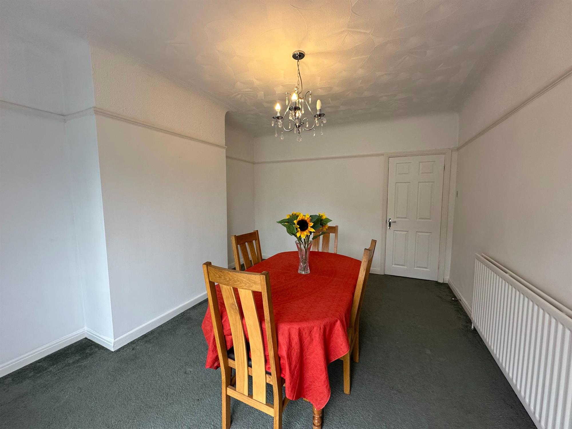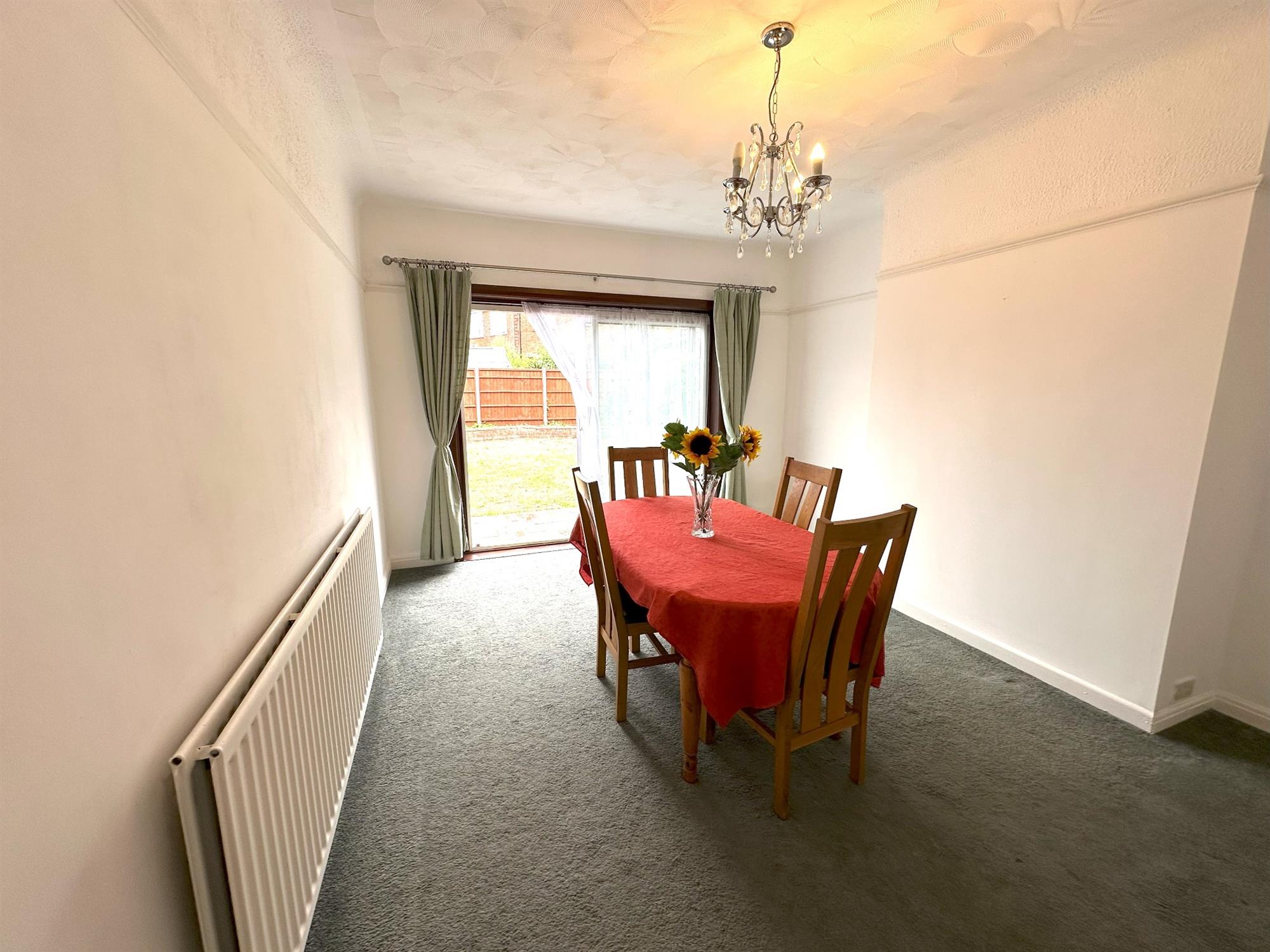 DINING ROOM – Carpeted flooring with patio door to garden.