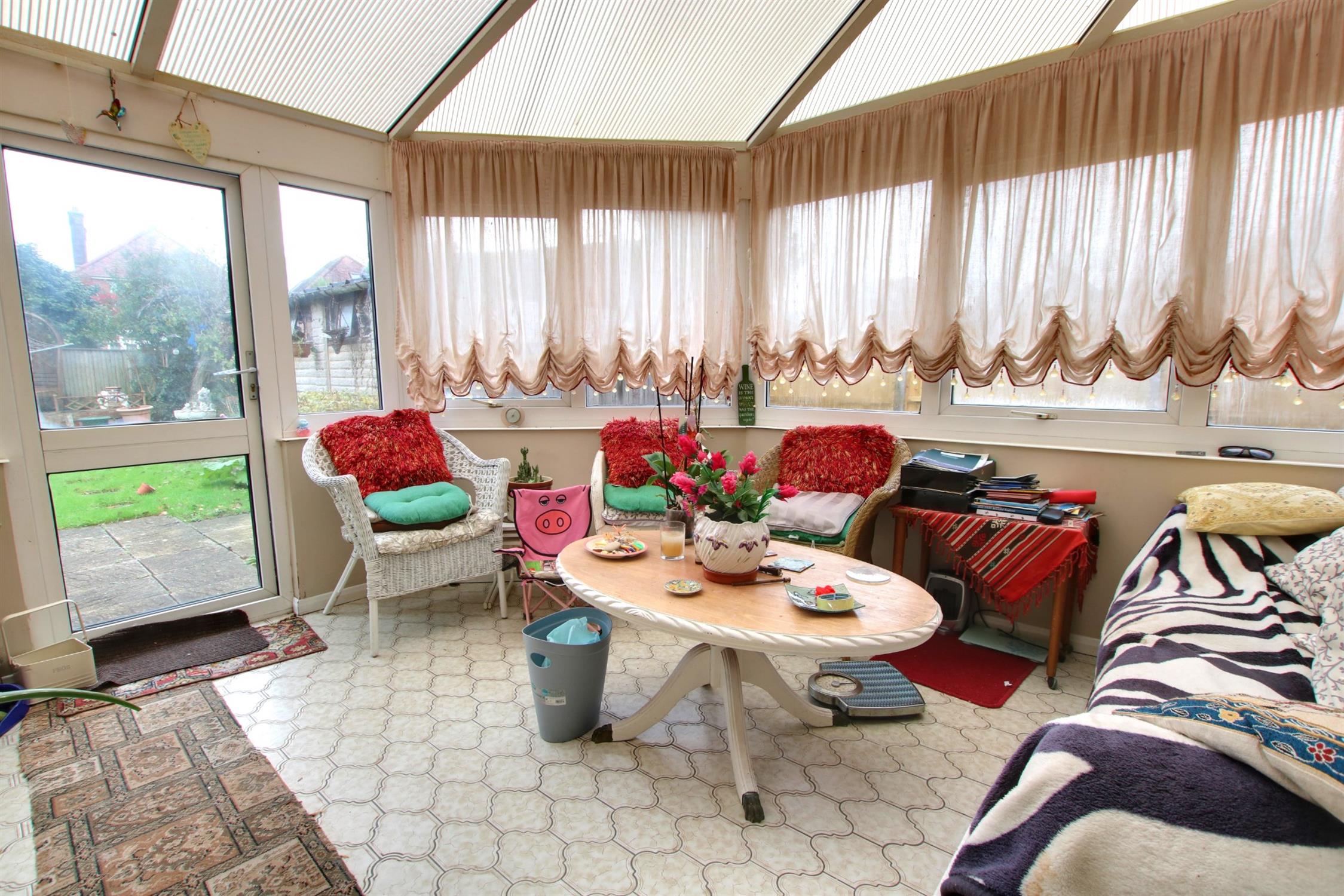 Double glazed windows to side and rear aspects. French doors opening onto the garden. Tiled flooring.