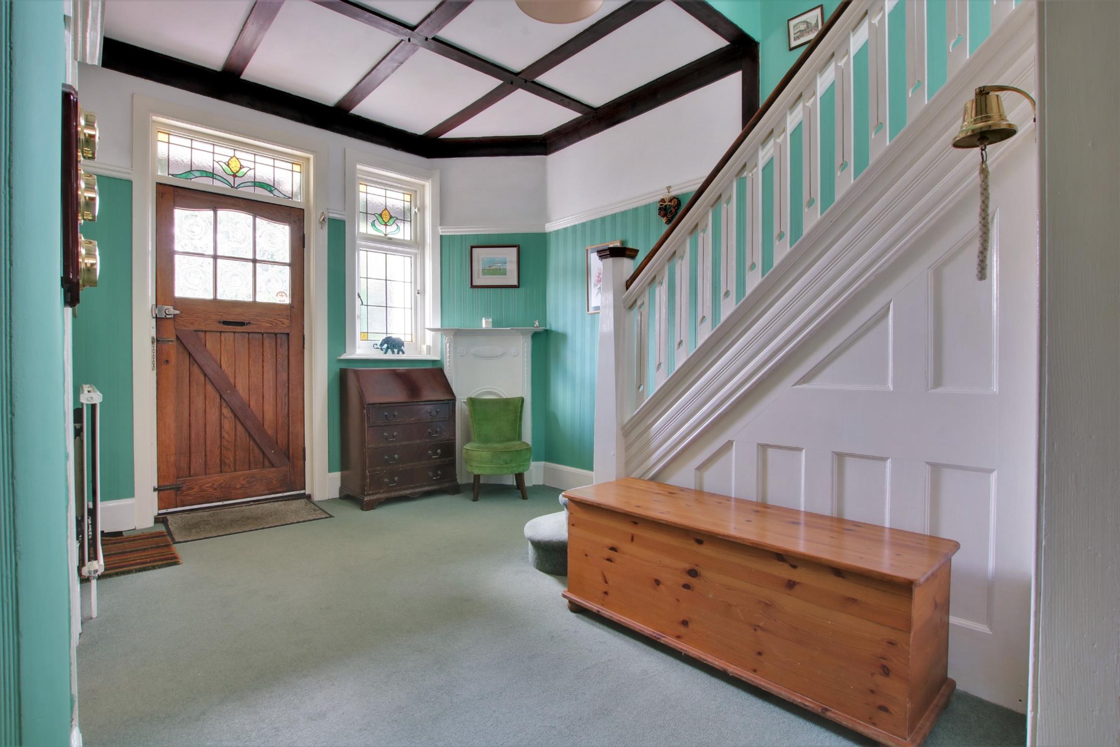 Period stained glass window to front aspect. Feature fireplace. Two radiators. Stairs to first floor. Under stairs storage cupboard with window to side aspect. Doors to all rooms.