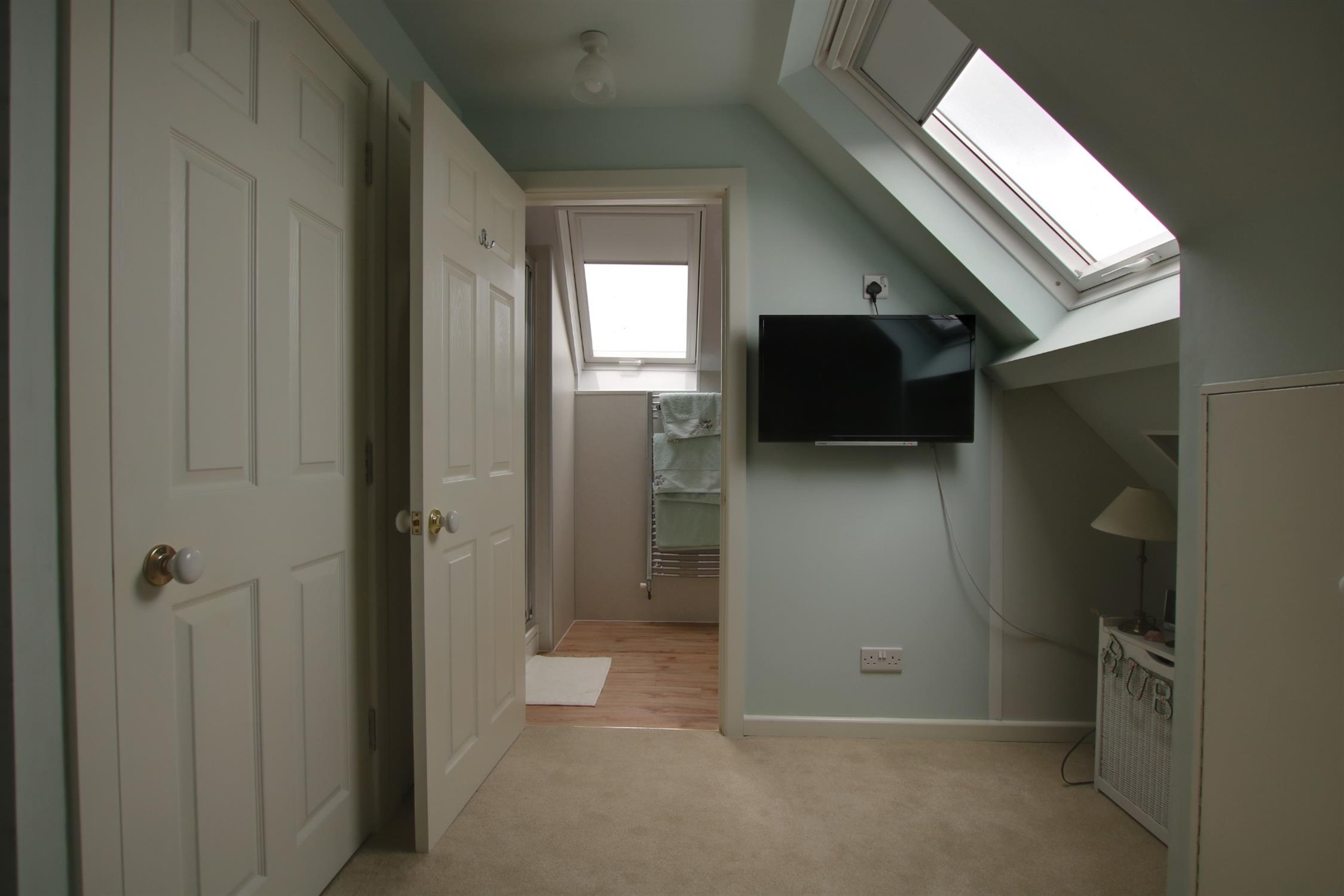 Double glazed velux window to side aspect. Smooth ceiling. Radiator. Built-in wardrobe. Access to eaves for storage. Door to:-