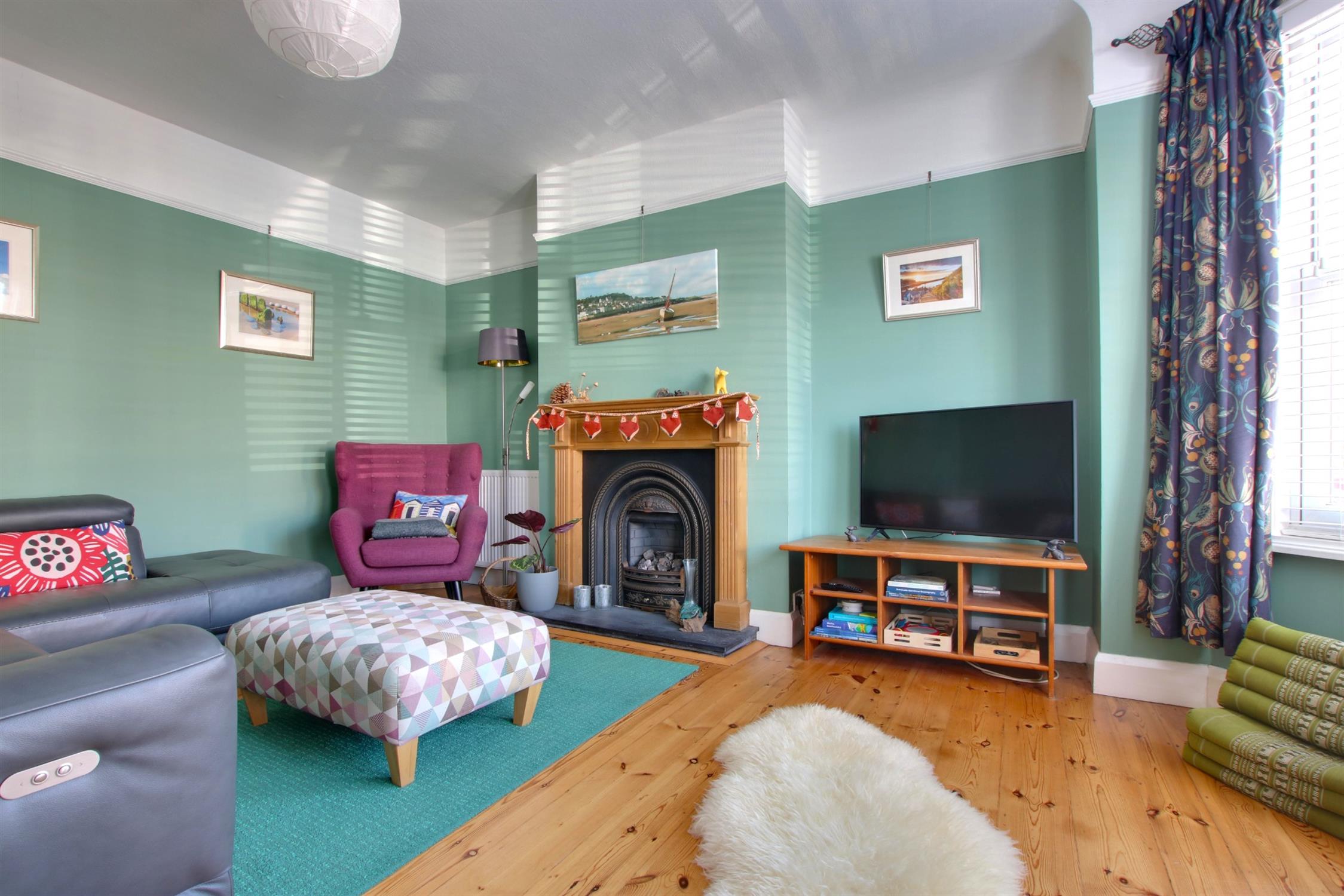 Skimmed ceiling. Picture rail. Double-glazed sash windows to front aspect. Fireplace. Exposed wooden flooring.