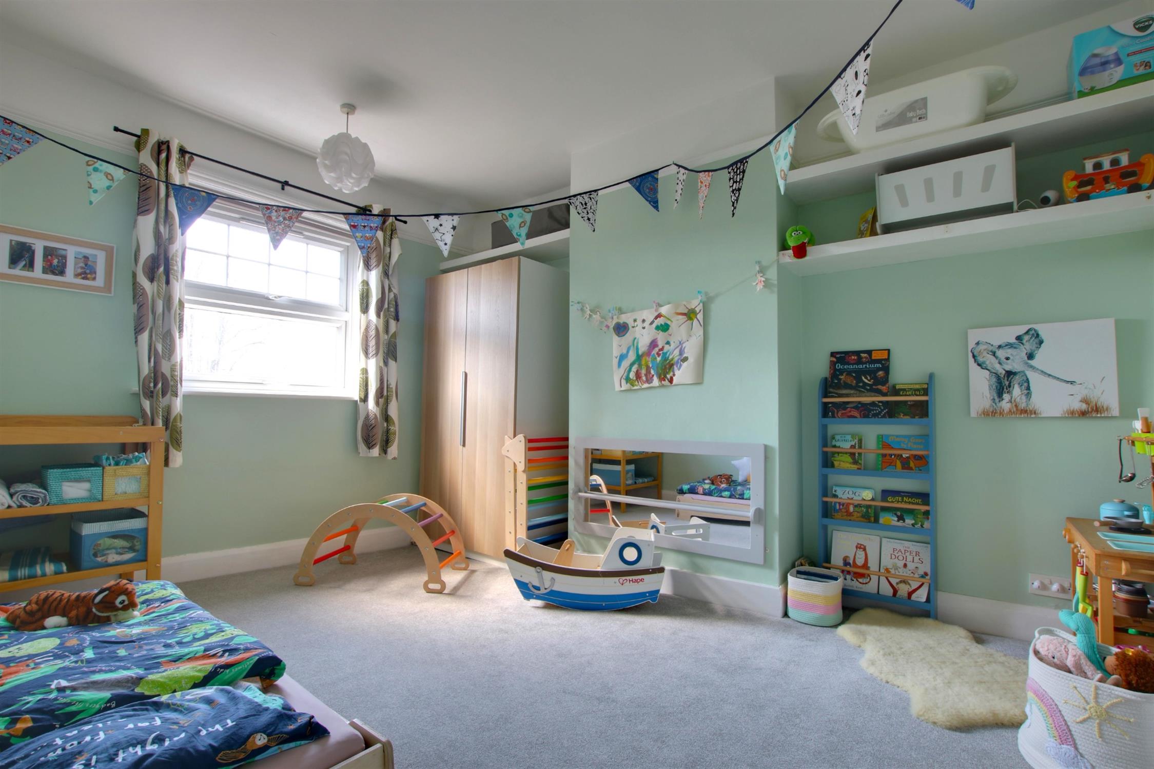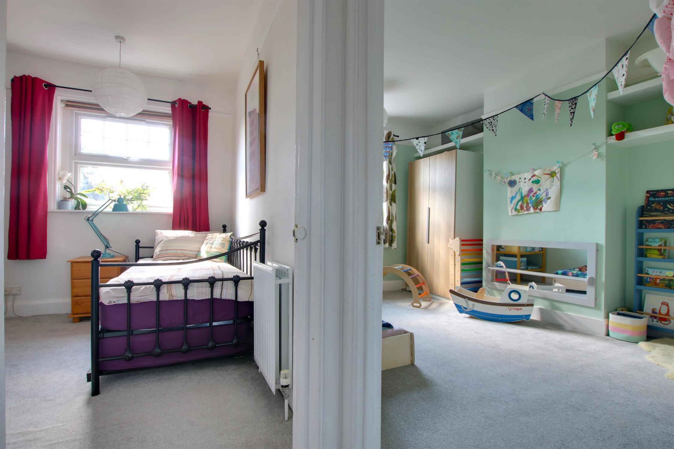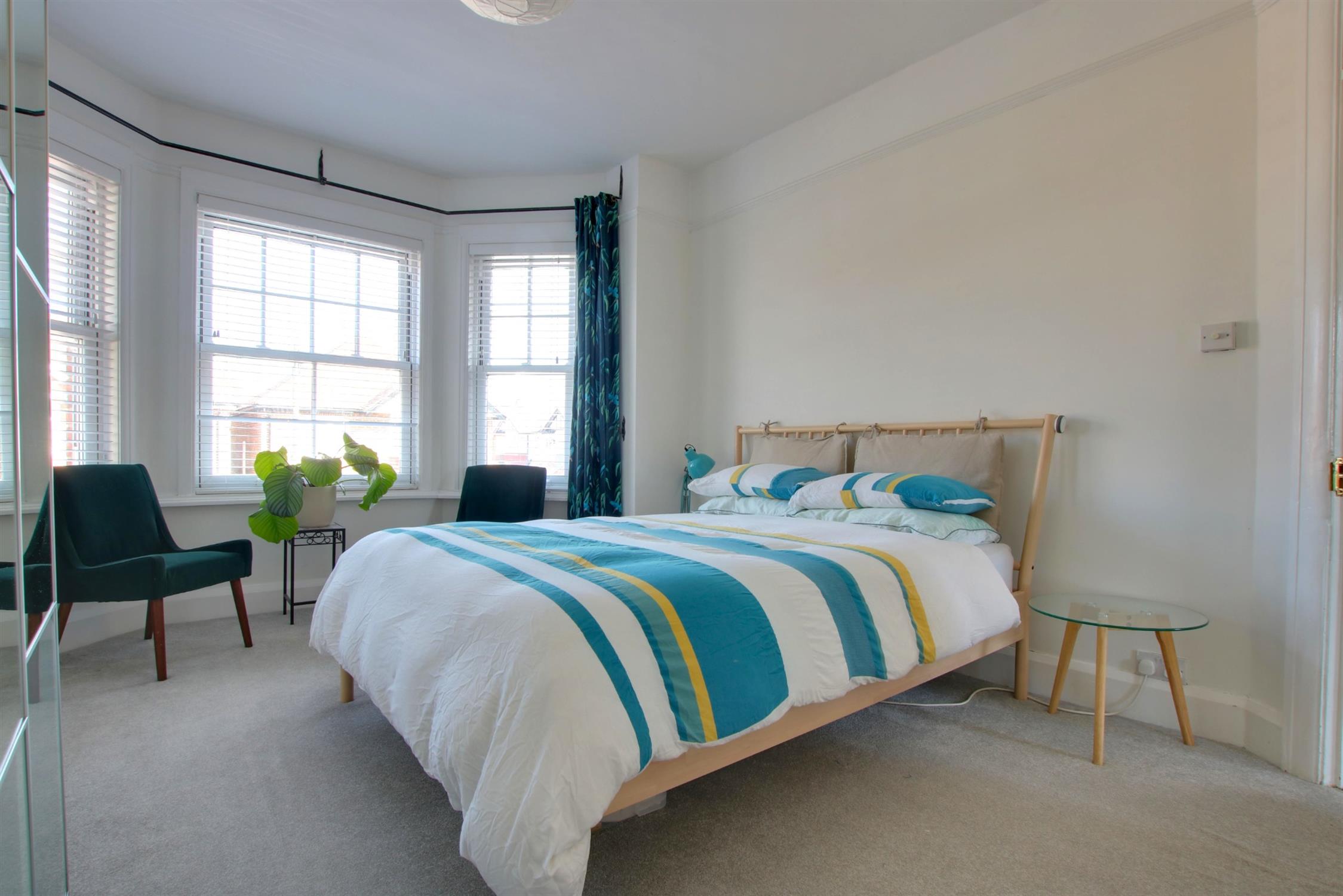 Skimmed ceiling. Picture rail. Double-glazed bay window to front aspect. Built-in wardrobes either side of chimney breast.