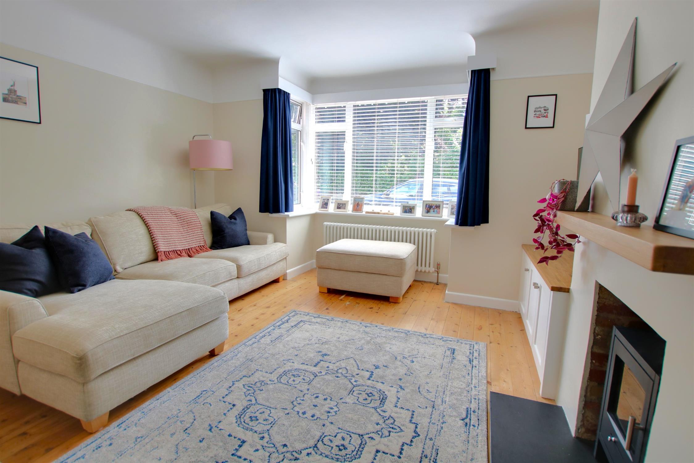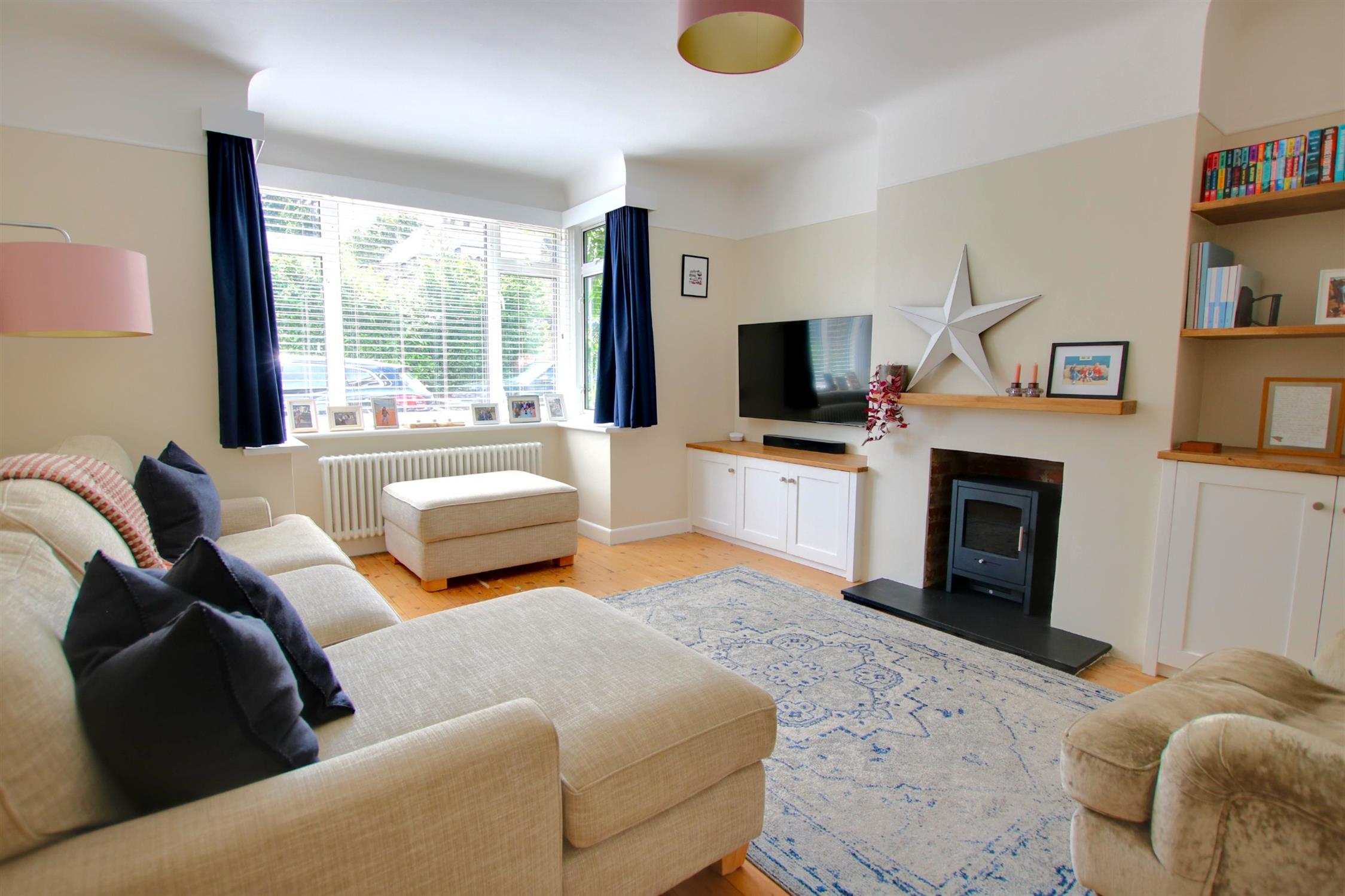 Double glazed box bay window to front aspect. Smooth ceiling. Picture rail. Feature fireplace with inset wood burner. Cupboards built in chimney recesses. Radiator. Stripped wood flooring.