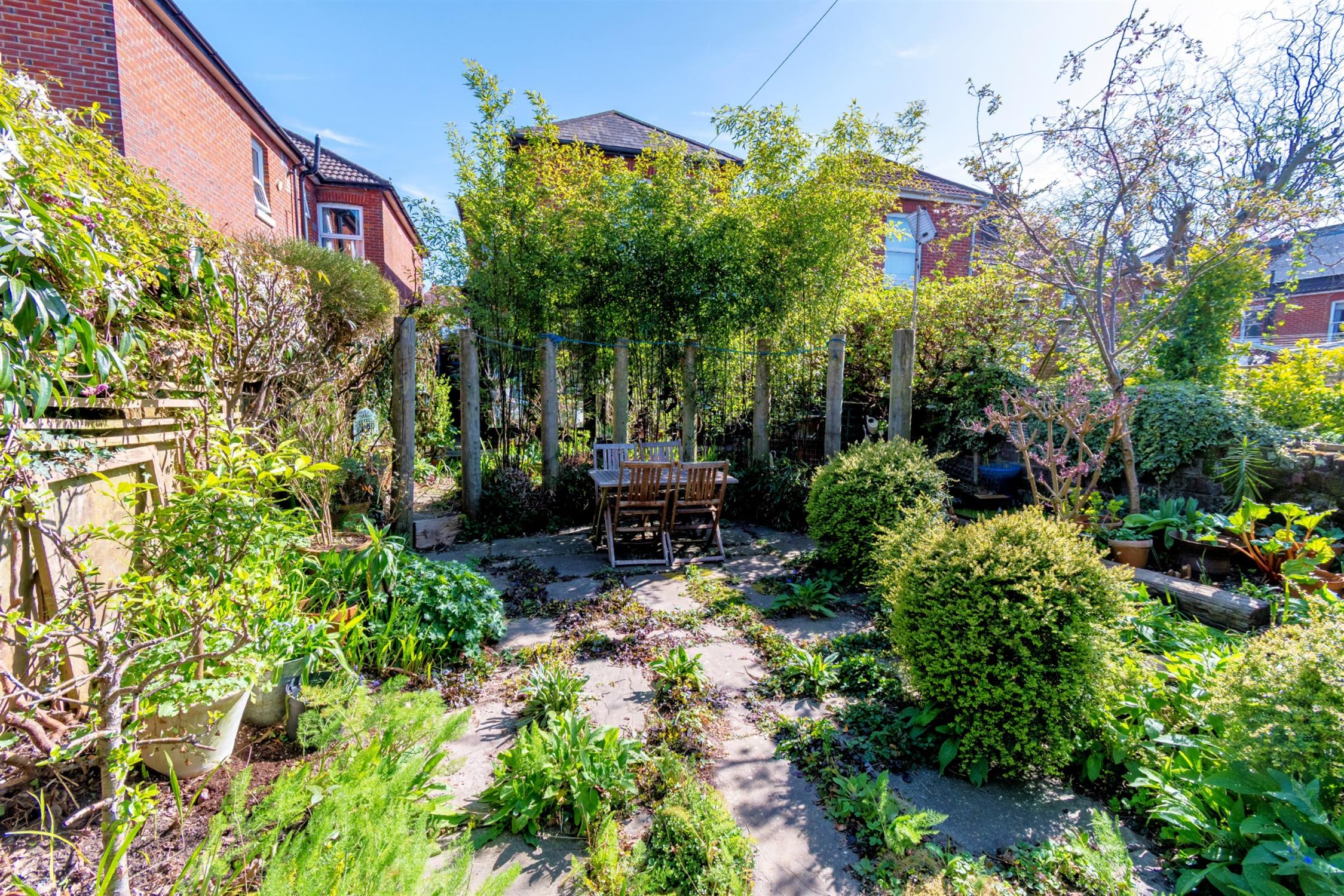 The rear garden is fully enclosed with a covered workshop area along the side of the property with a Belfast sink, space and plumbing for washing machine and access to the rear garden. The garden is principally paved with decked seating areas and is well stocked with a wide variety of mature plants, shrubs and trees. Ornamental pond. Sleeper retained beds. Double glazed summer house.