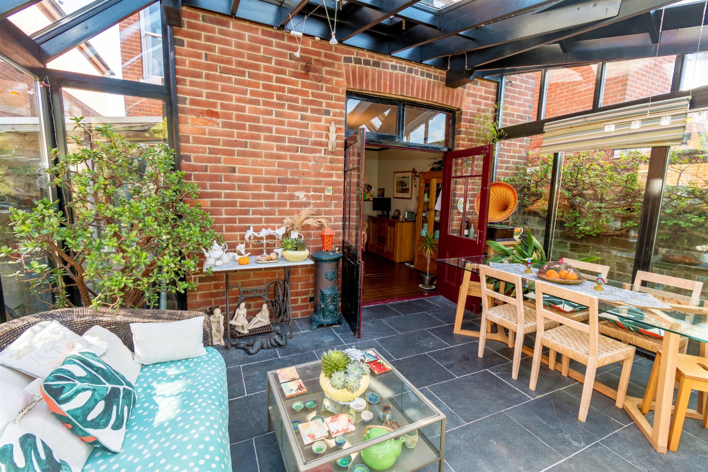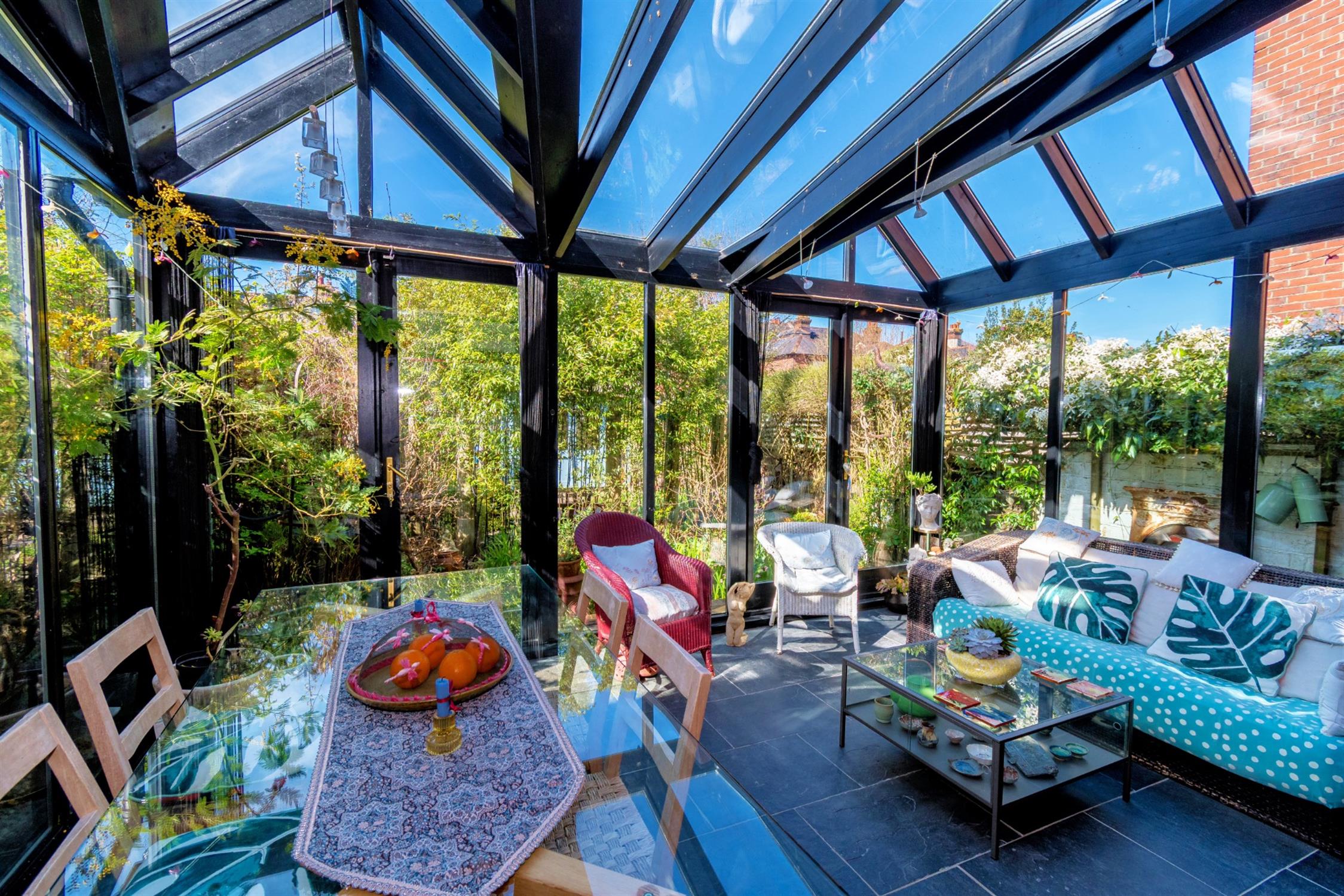 Double glazed bespoke timber framed conservatory with two sets of French doors opening onto the rear garden. Windows to all aspects. Tiled flooring with underfloor heating.