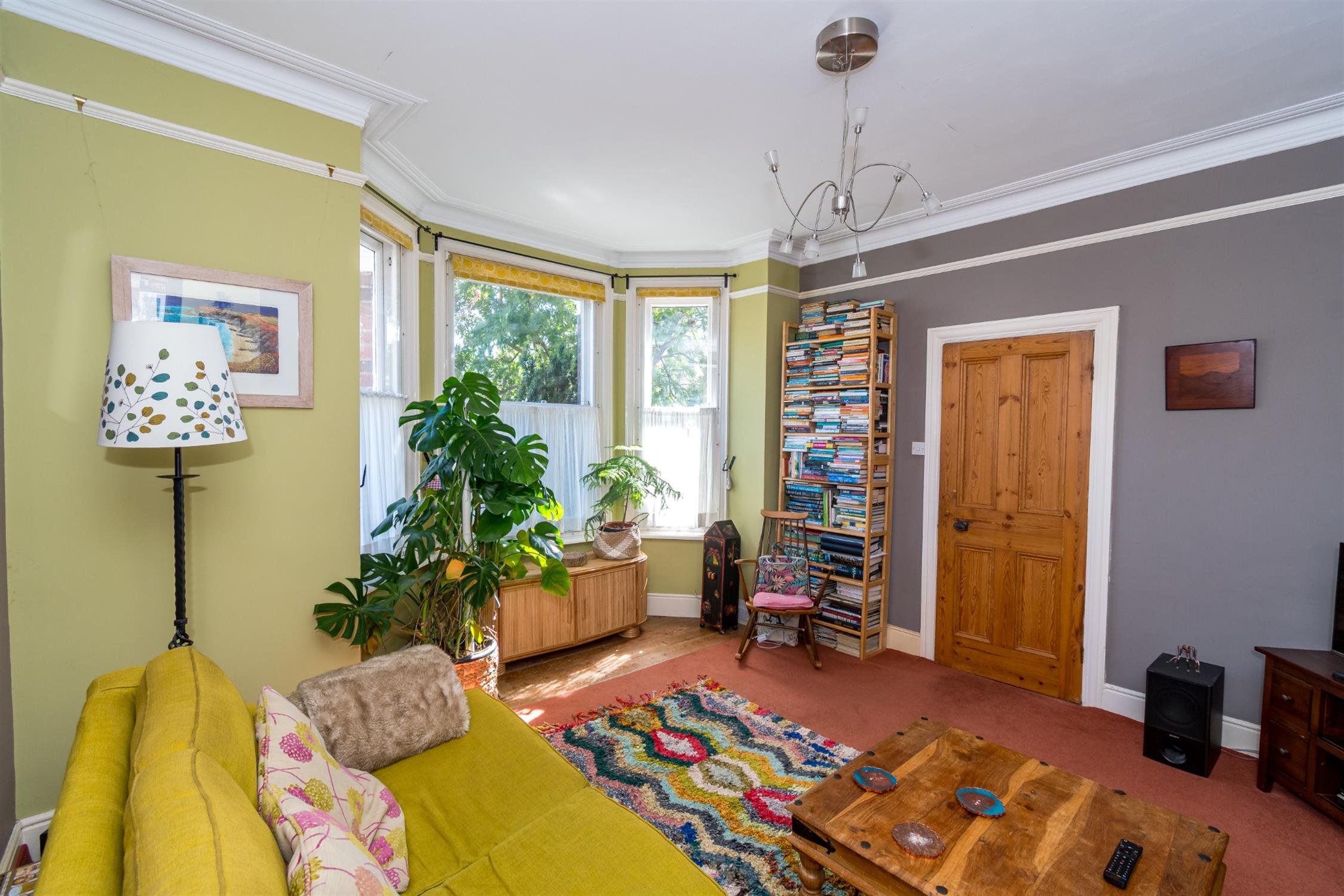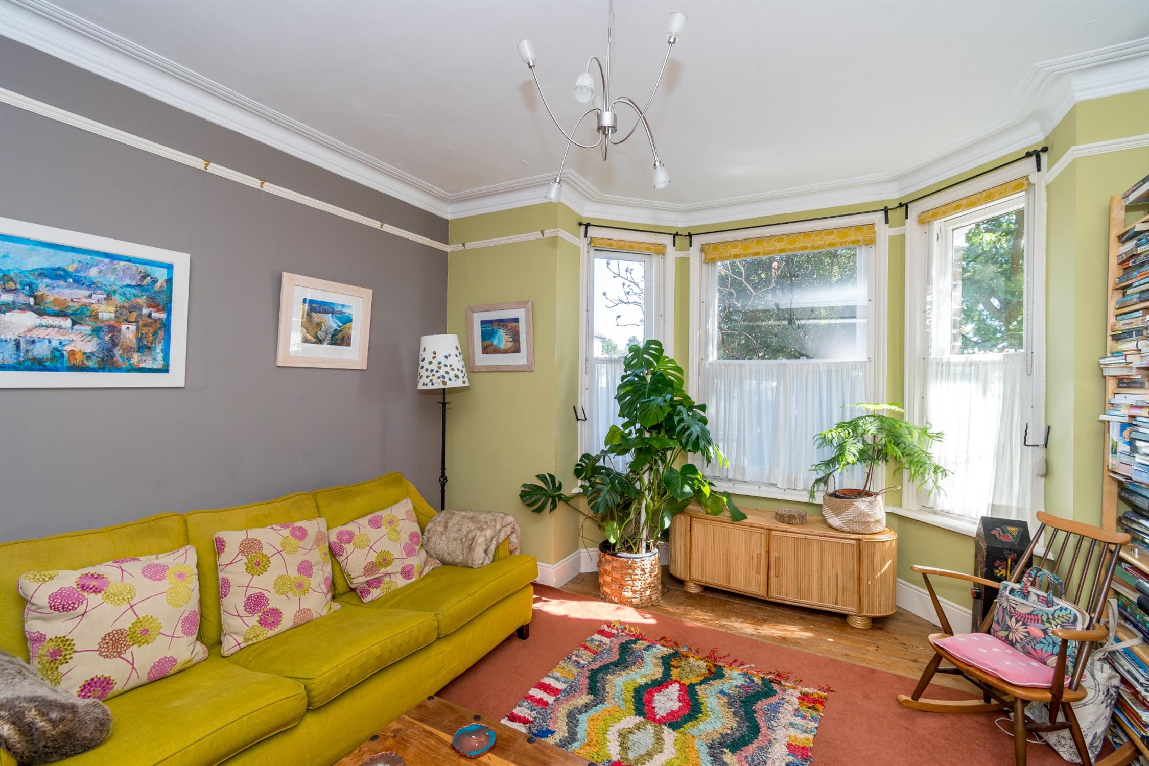 Bay window with period sash windows and secondary double glazing to front aspect. Period plaster coving to ceiling. Picture rail. Feature fireplace. Radiator. Stripped wood flooring.