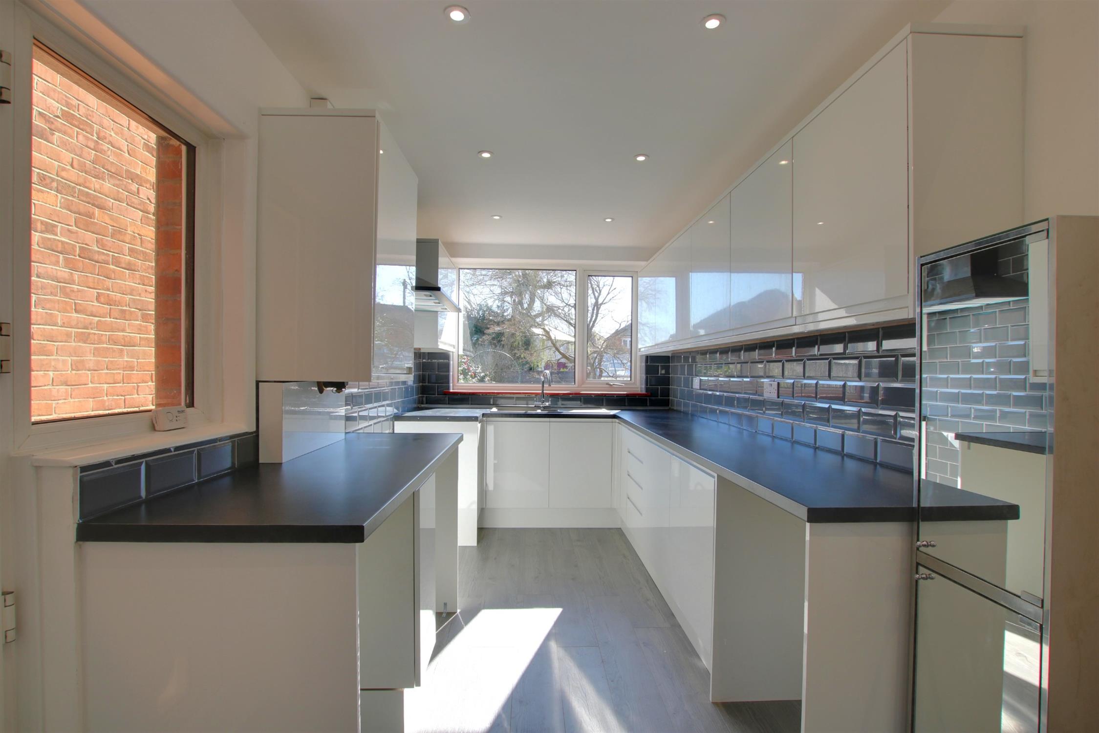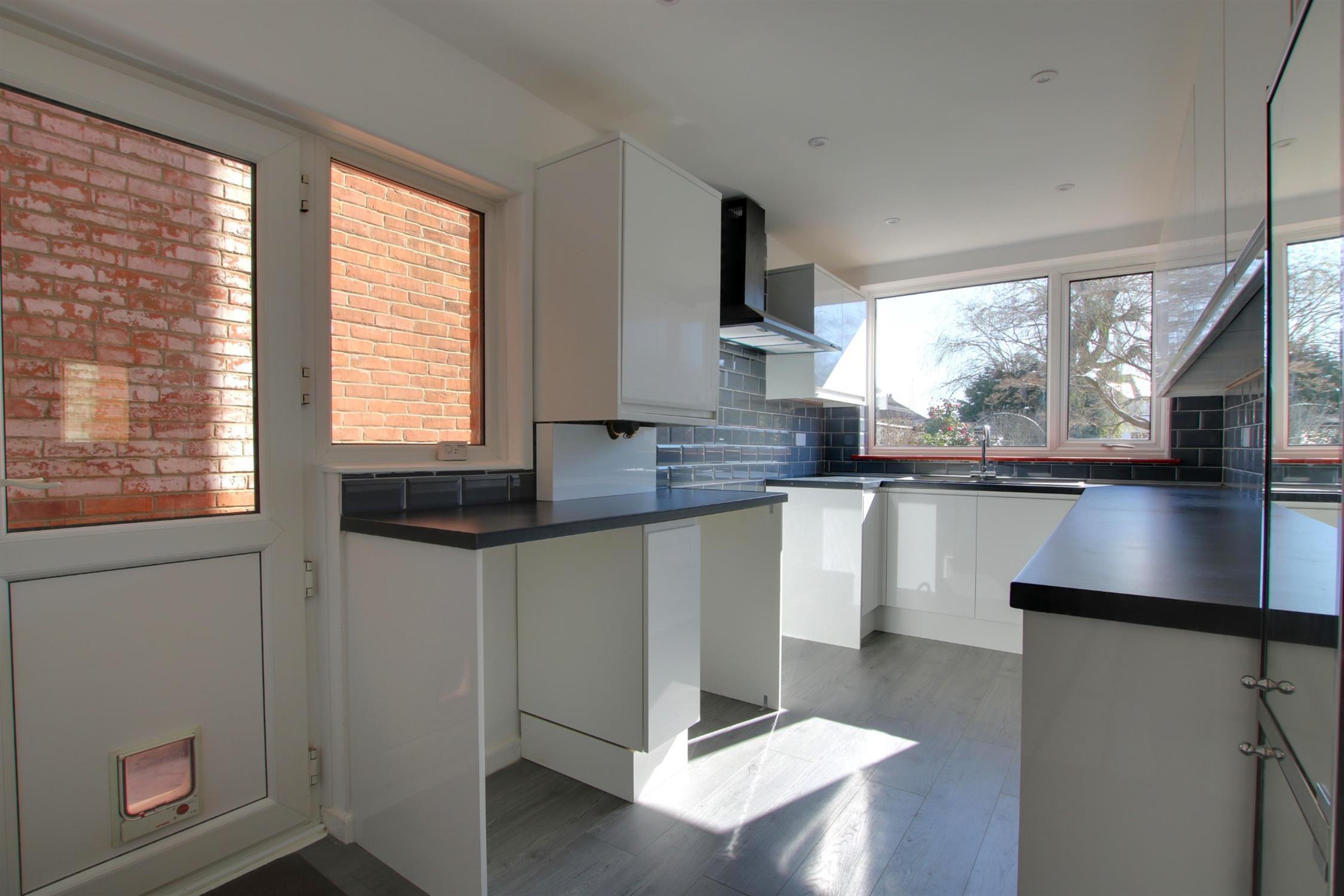 Double glazed windows to side and rear aspects. Smooth ceiling. Single drainer sink unit with mixer tap and cupboard under. A range of matching eye level and base mounted units with roll top work surface over. Space and plumbing for washing machine, dishhwasher and tumble dryer. Space for range style oven. Space for fridge/freezer. Wall mounted boiler. Door to rear garden.