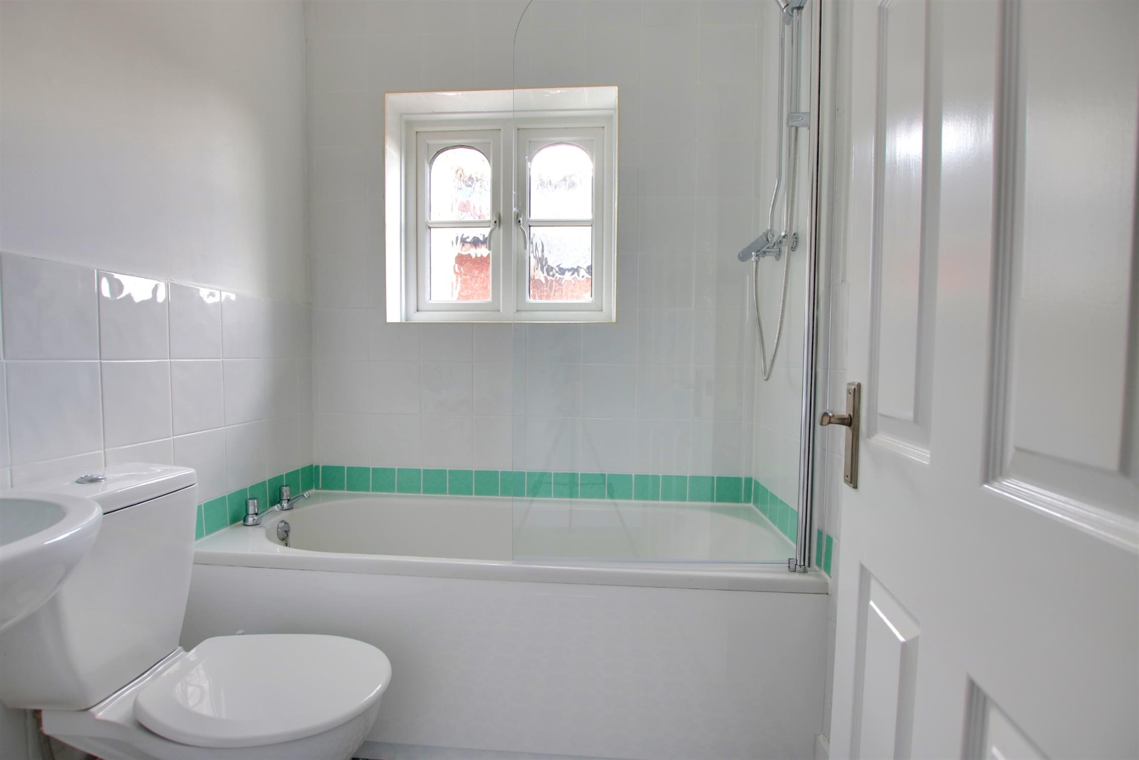 Double glazed obscure glass window to side aspect. Coving to textured ceiling. Panel enclosed bath with shower over, low level flush w.c. and pedestal wash basin. Heated towel rail. Part tiled walls. Laminate flooring.