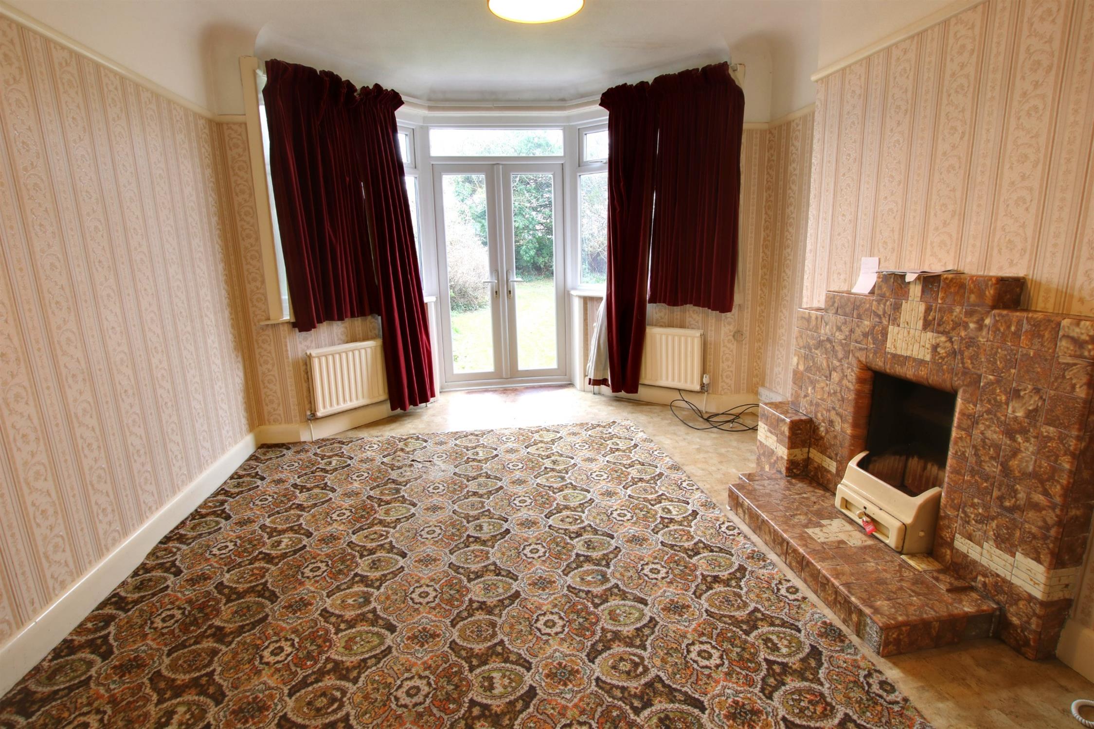 Picture railing. Focal fireplace. Double glazed window and double glazed patio doors to garden. Two radiators