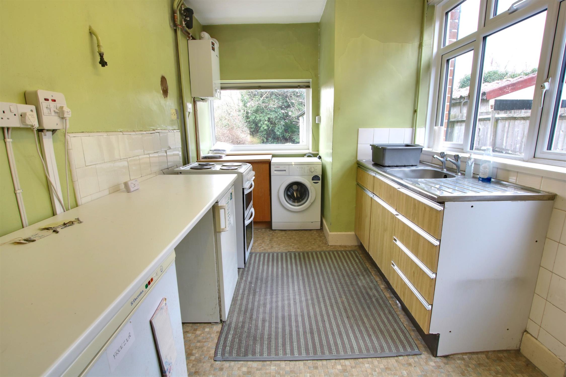 Original built-in cupboard. Single drainer stainless steel sink unit and storage under. Double glazed window to rear and side elevation. Double glazed door to side elevation. Combination central heating boiler. Space for white goods.