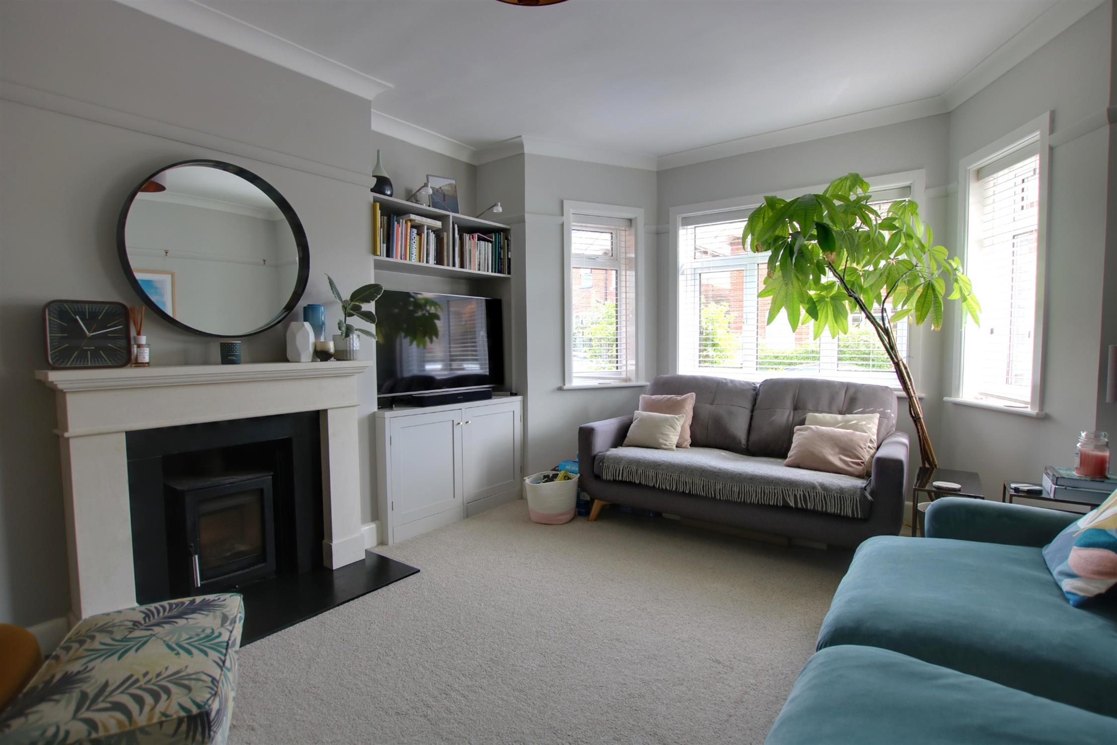 Skimmed ceiling with coving. Picture rail. Double glazed bay window to front aspect. Wood burner.