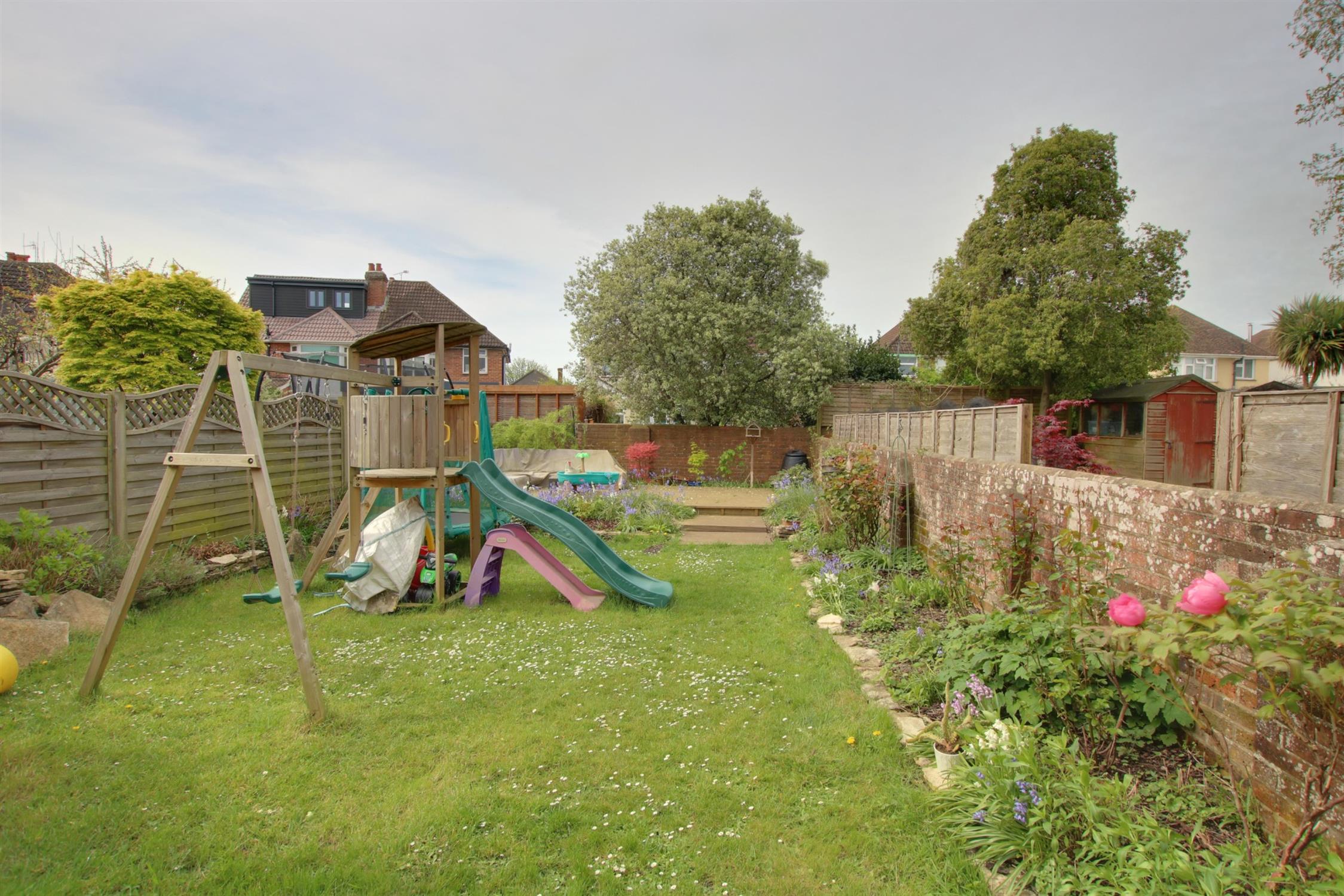 The rear garden is mainly laid to lawn with neatly planted borders, a well proportioned patio seating area and a further decked seating area which takes full advantage of the gardens southerly aspect.