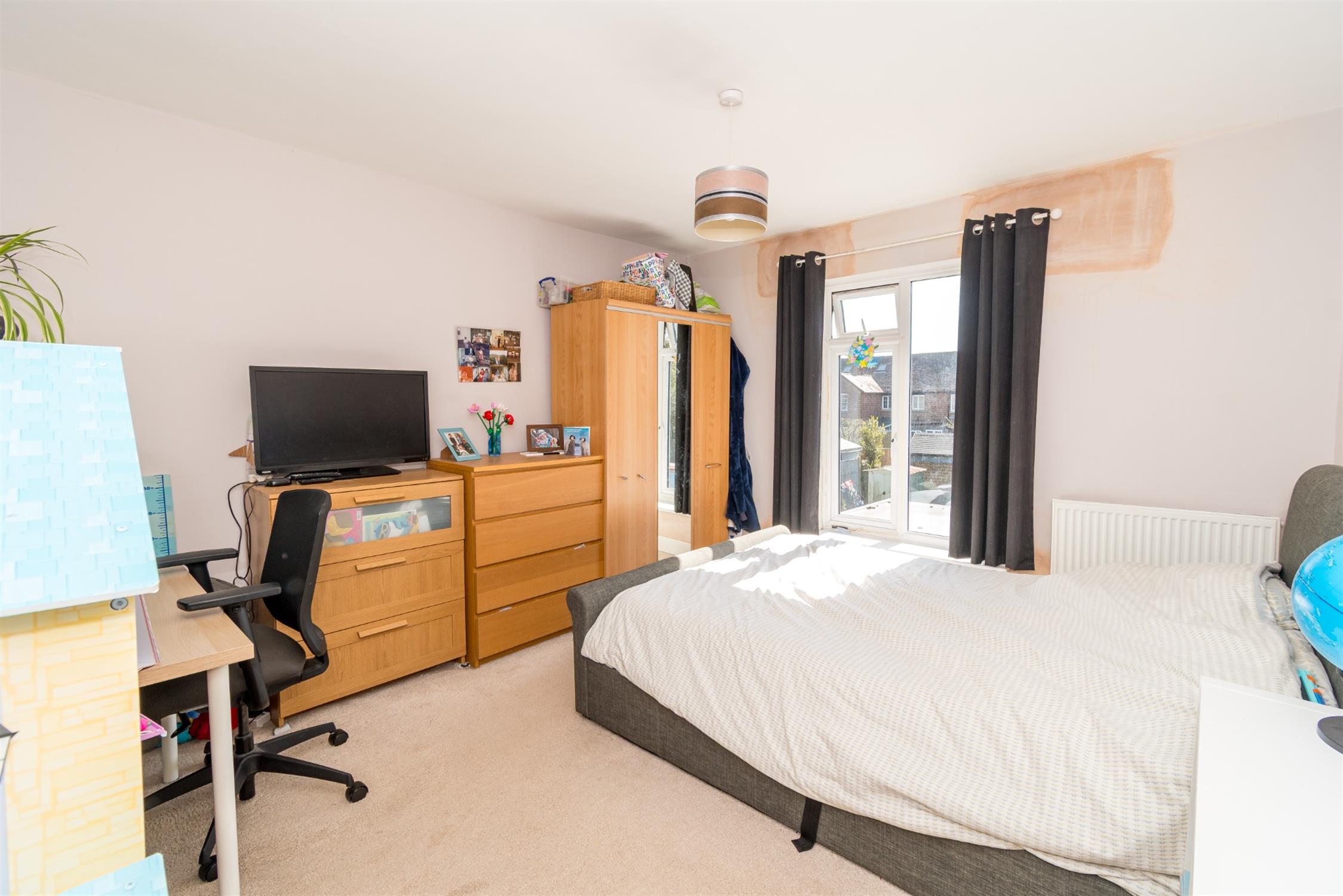 Double glazed bay window with fitted cupboards to front aspect. Smooth ceiling. Radiator. Fitted double wardrobe.