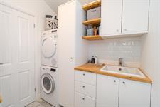 Double glazed velux window to side aspect. Sink with mixer tap and cupboard under. A range of matching cupboards with wood block work surface over. Space and plumbing for washing machine. Space for tumble dryer. Radiator. Door to:-