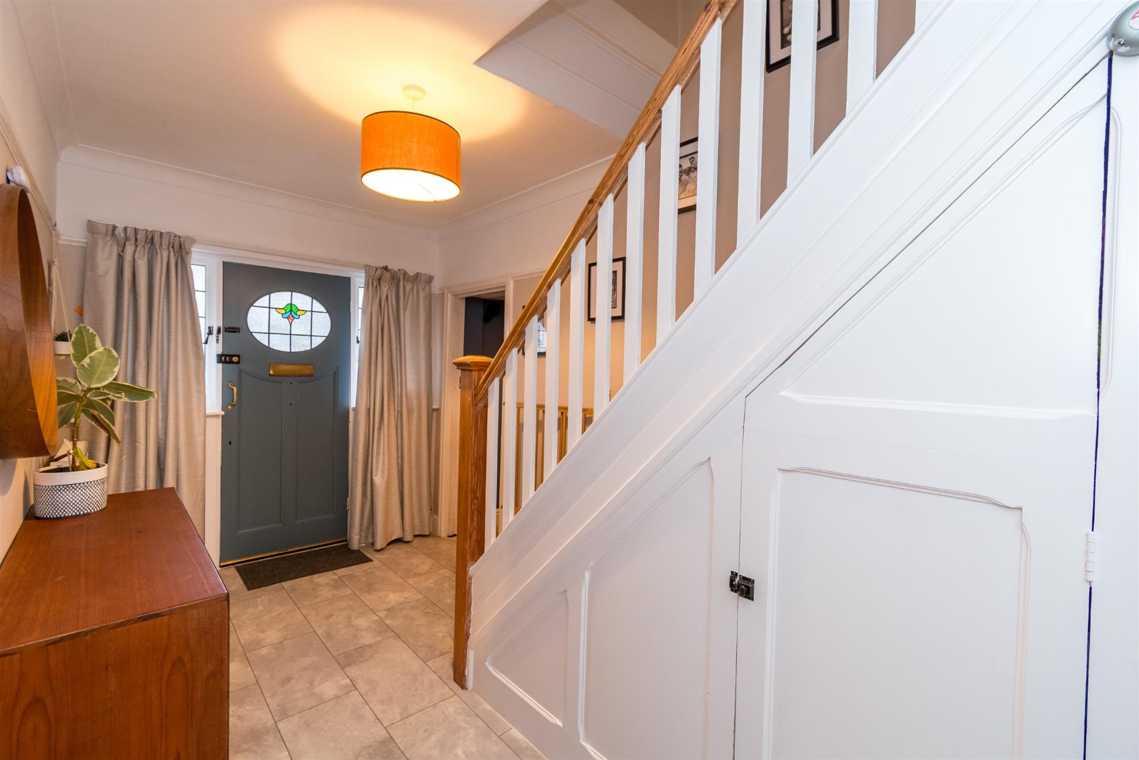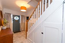 Coving to smooth ceiling. Picture rail. Stairs to first floor. Under stairs storage cupboard. Radiator. Doors to all rooms.