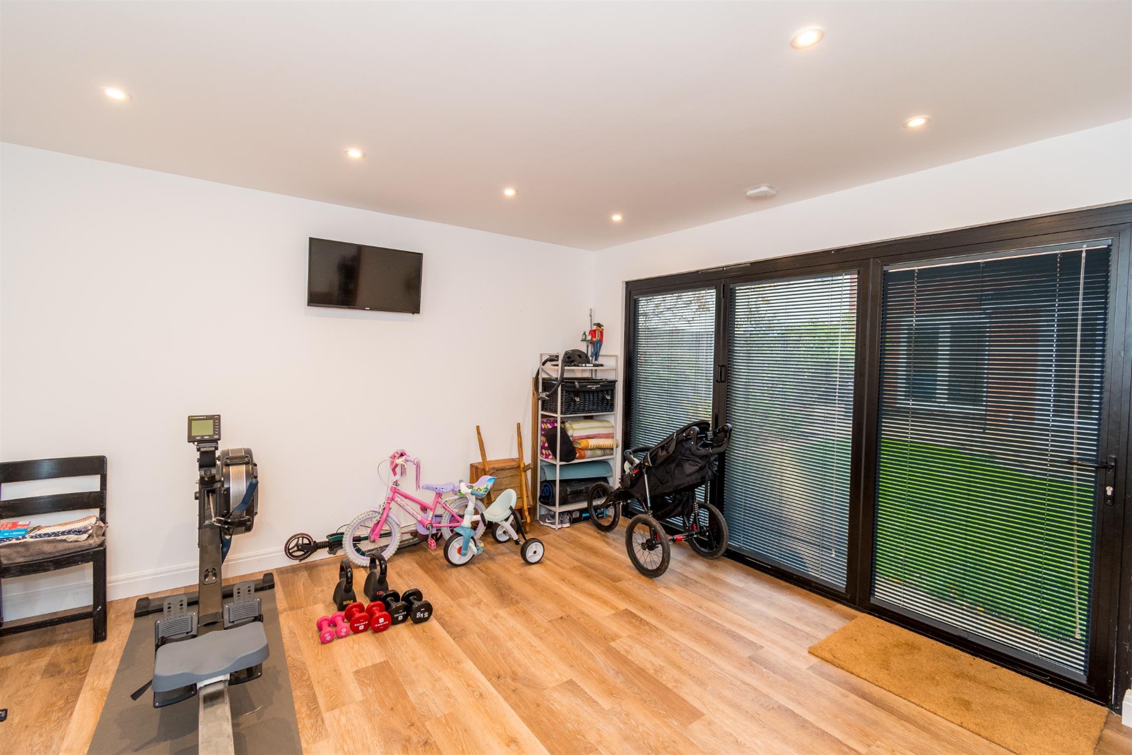 Externally there is a block paved driveway to the front, an enclosed private rear garden with a south easterly aspect and a fully insulated outbuilding that offers home office space, storage and a gym.