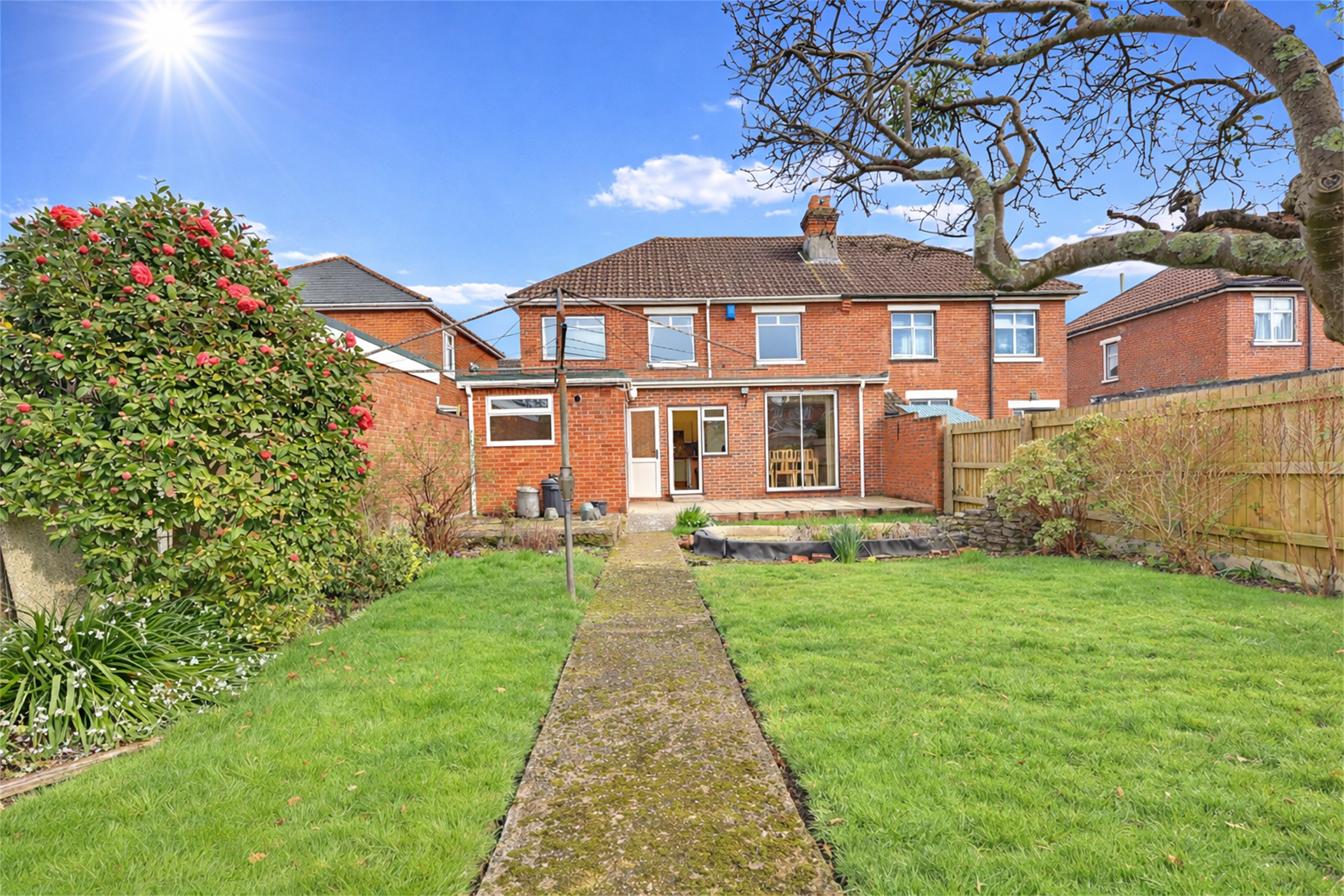 The rear garden is fully enclosed and benefits of a westerly aspect. The garden is principally laid to lawn with established flower and shrub borders. Paved patio. Outside tap.