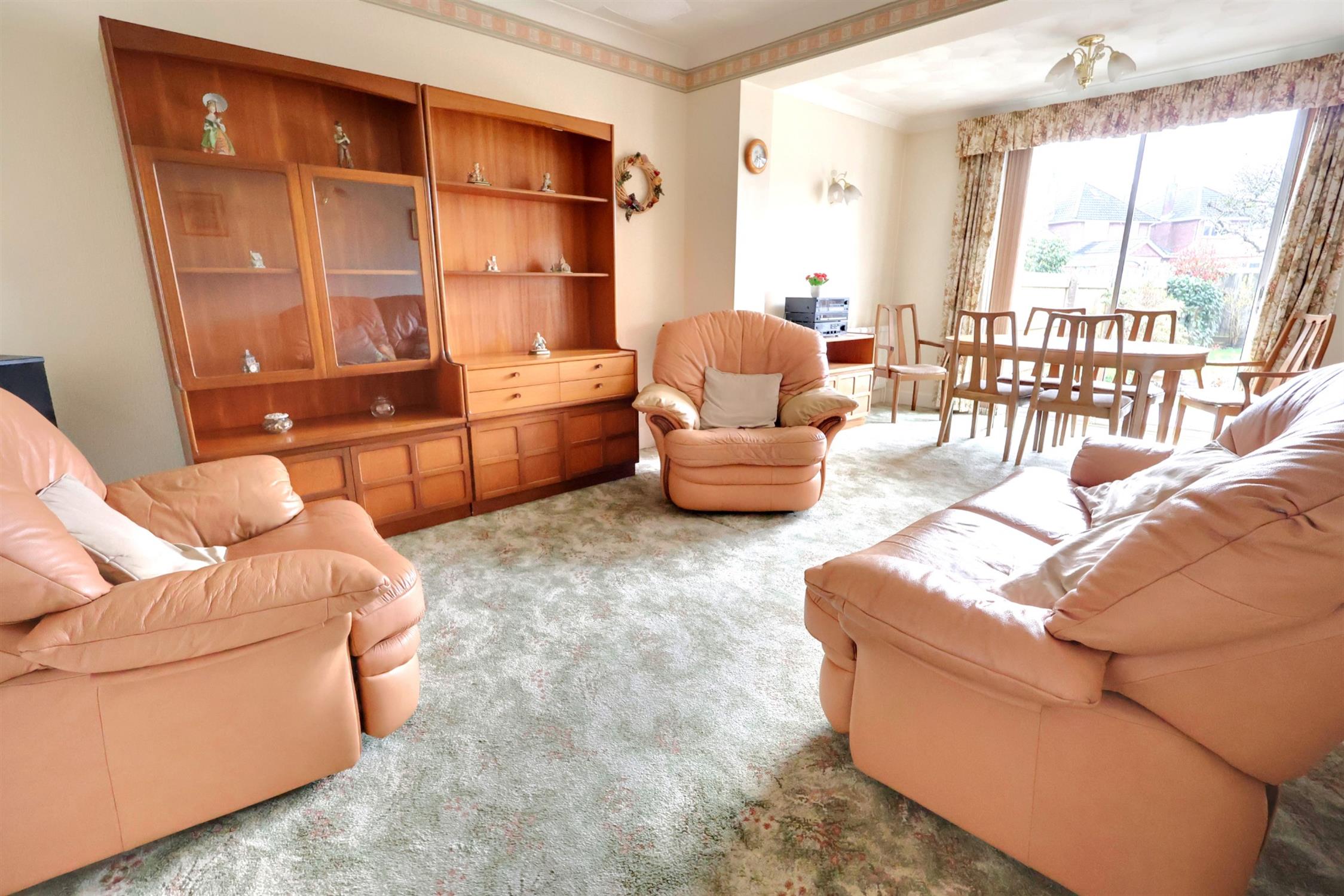 Range of fitted wall and base units with worktop over. Fitted oven. Gas hob. Chrome sink with mixer tap and drainer. Space for fridge/freezer. Lino and carpeted flooring. Tiled splashbacks. Double glazed aluminium sliding and back door opening onto the garden. Radiator