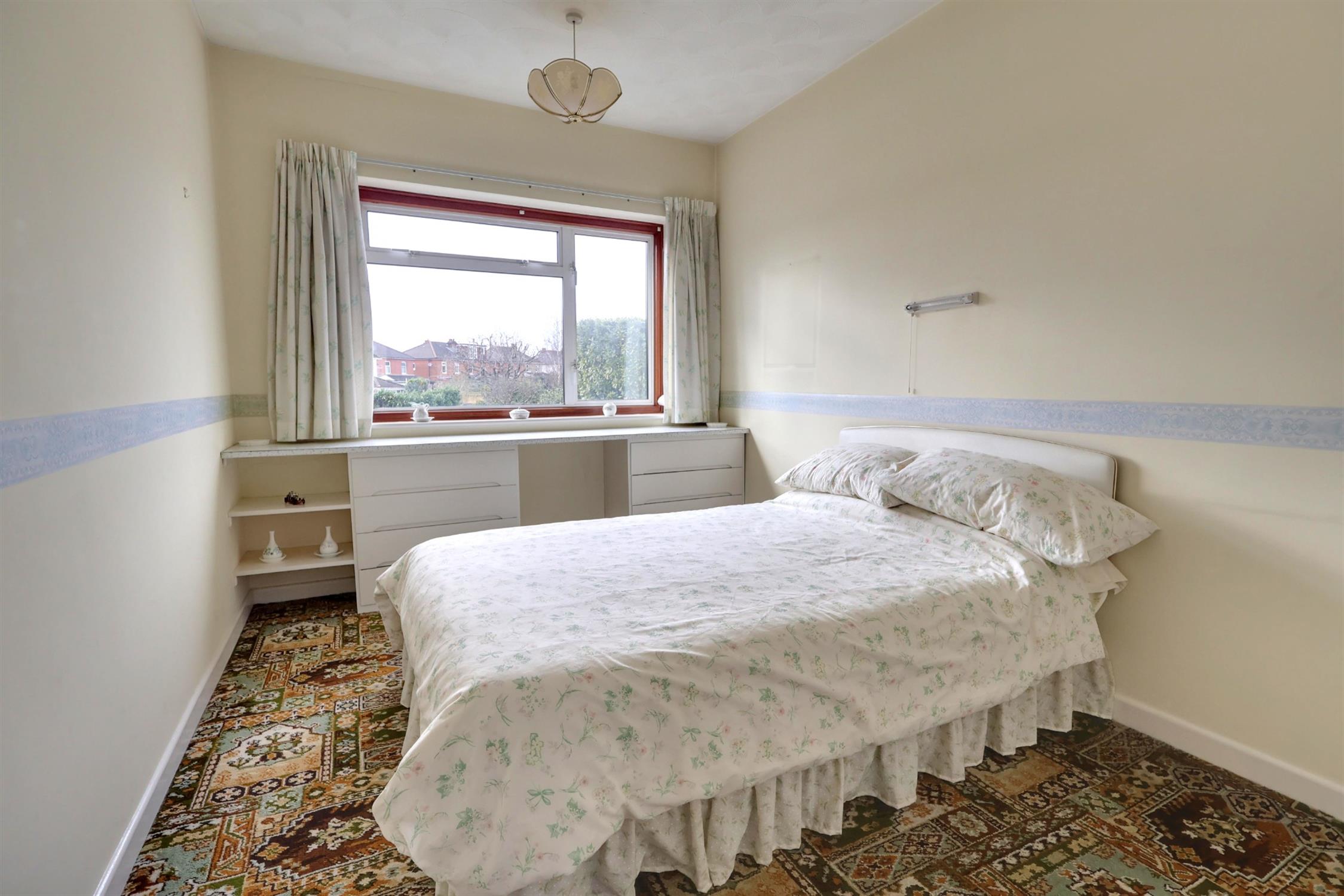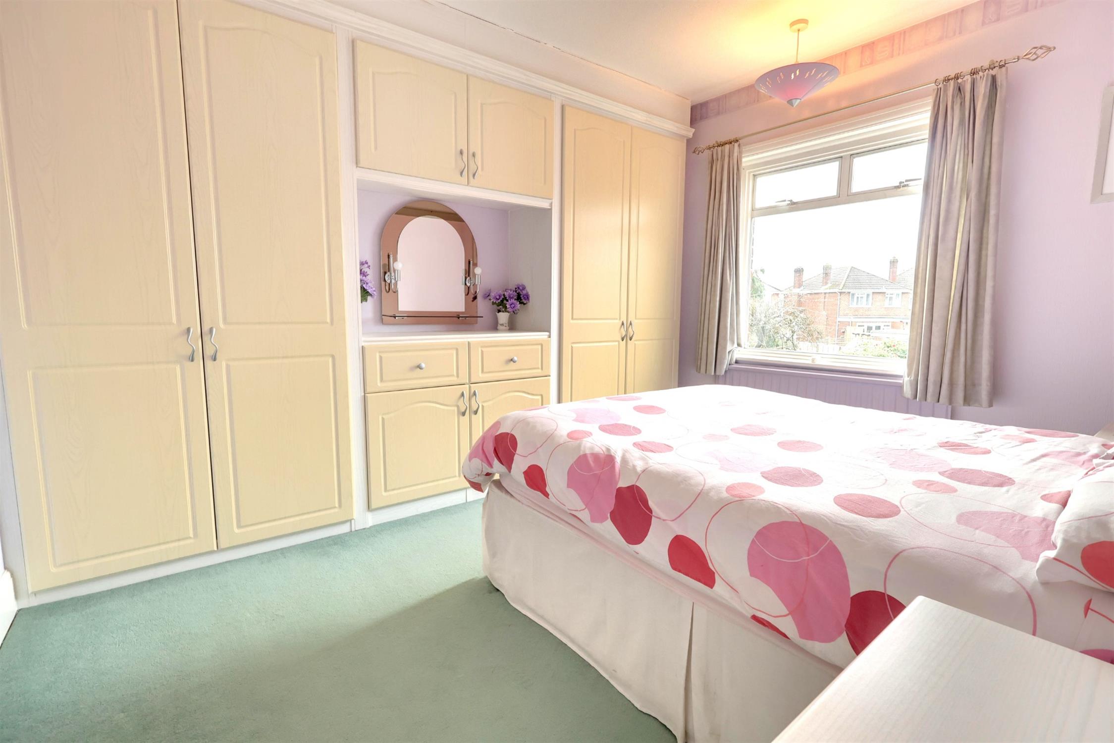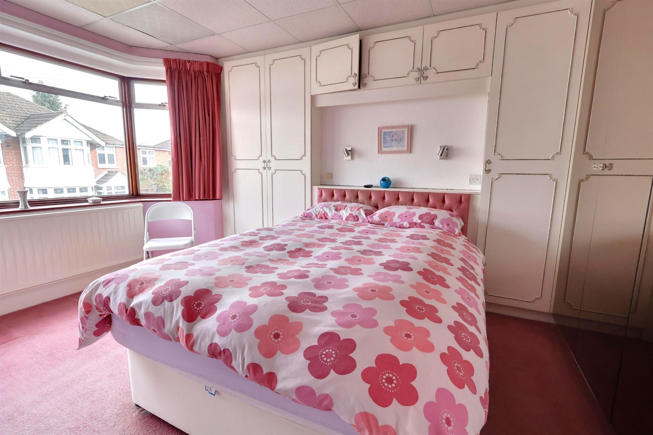 Carpeted flooring. Double glazed aluminium bay window. Built in wardrobes and cupboards. Radiator. Sink with vanity unit. Shower cubicle.