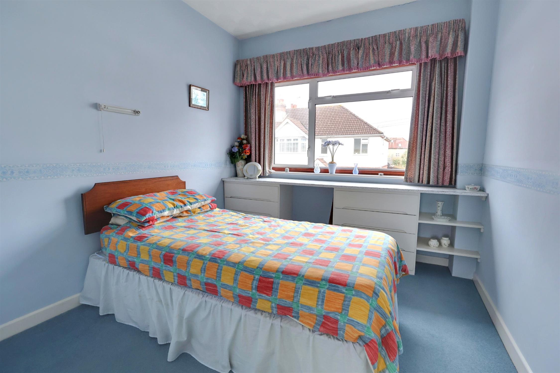 Carpeted flooring. Double glazed aluminium window with rear aspect. Built in cupboards and desk. Radiator.