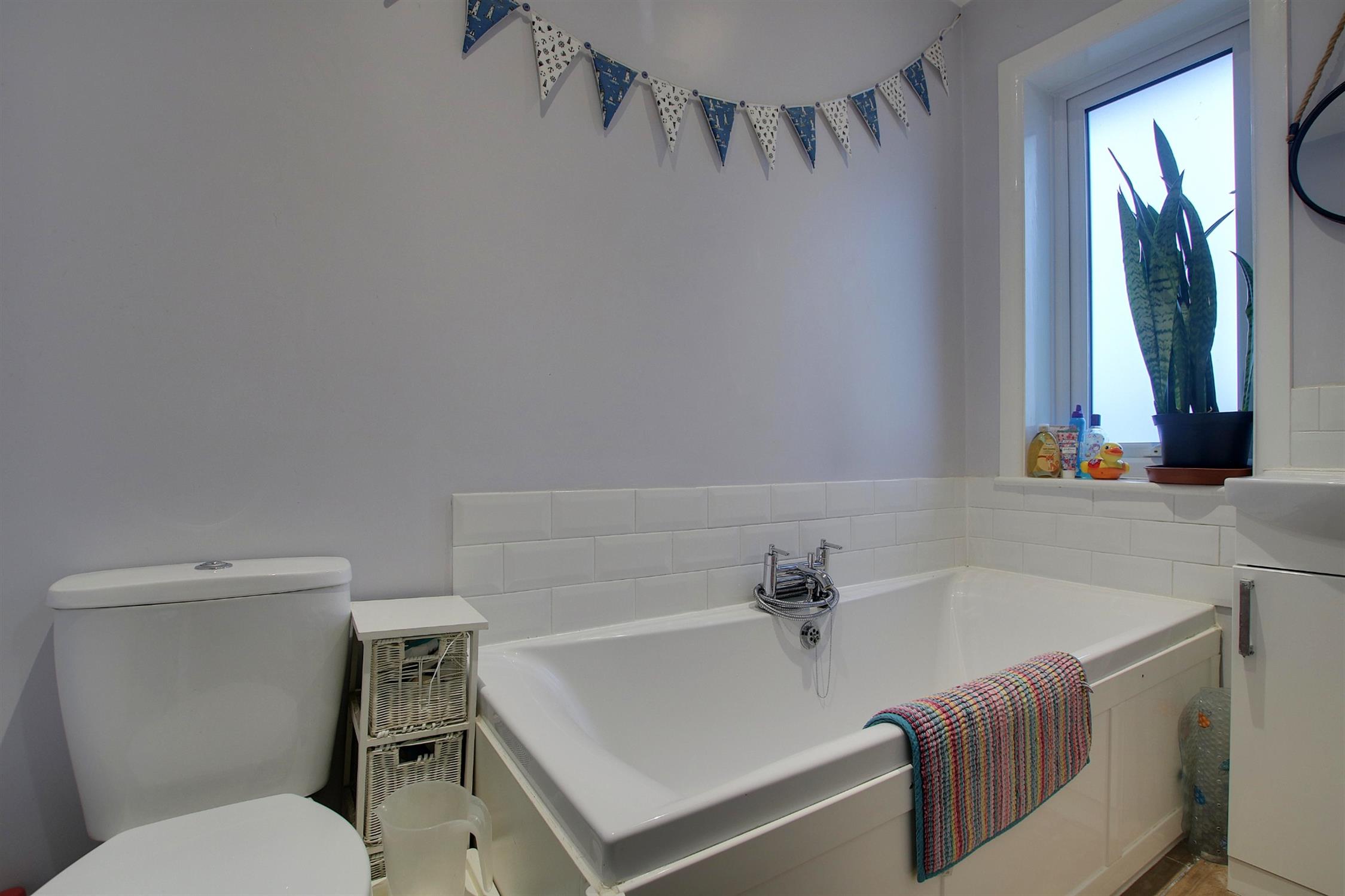 The first floor landing has access to the part boarded loft space, and also provides access to the three bedrooms two of which are doubles with fitted wardrobes and the third a good size single room. Our clients have also imaginatively created a bathroom on the first floor comprising a modern white three piece suite with complementary tiling.