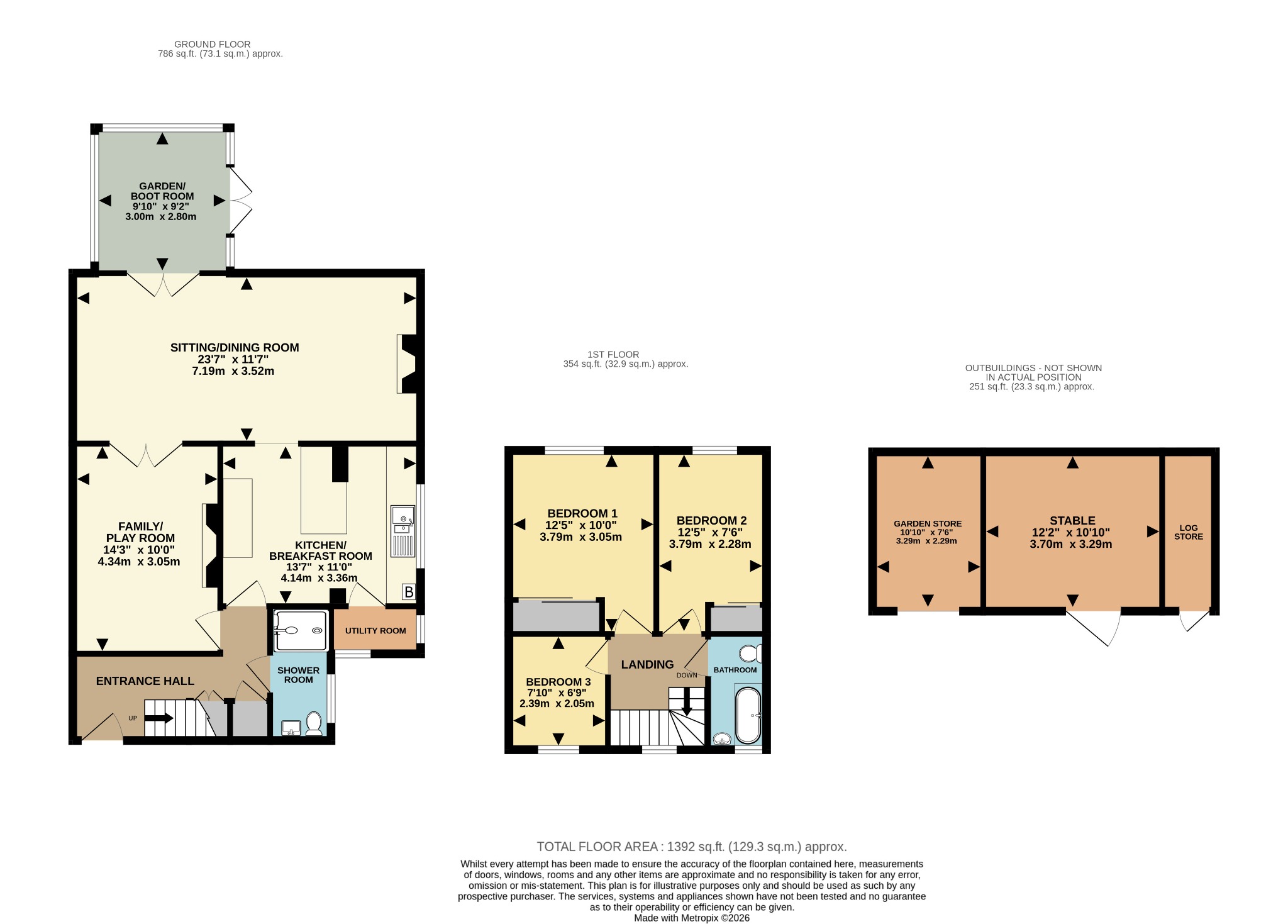 Outside to the front is a block paved drive with off-road parking for at least three cars, and there is gated side access to the rear garden which is mainly laid to lawn with a raised decking area for barbecues and al-fresco dining, some flowers and shrubs, and a separate yard at the end of the garden with some outbuildings comprising garden and log stores, and a stable. Whilst requiring some refurbishment, these are ideal for general storage but have tremendous potential to be converted or replaced, possibly subject to planning permission with a more permanent structure.