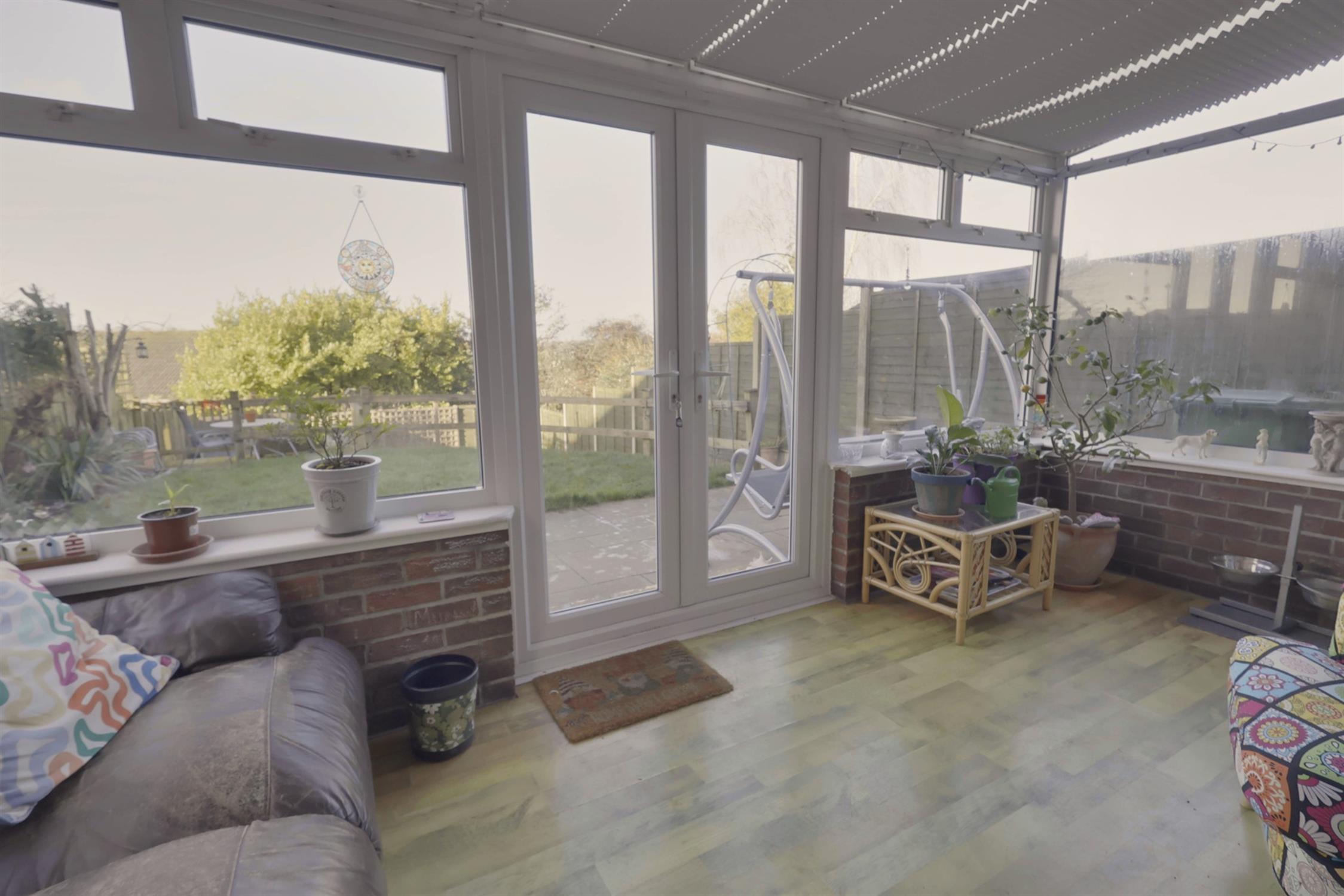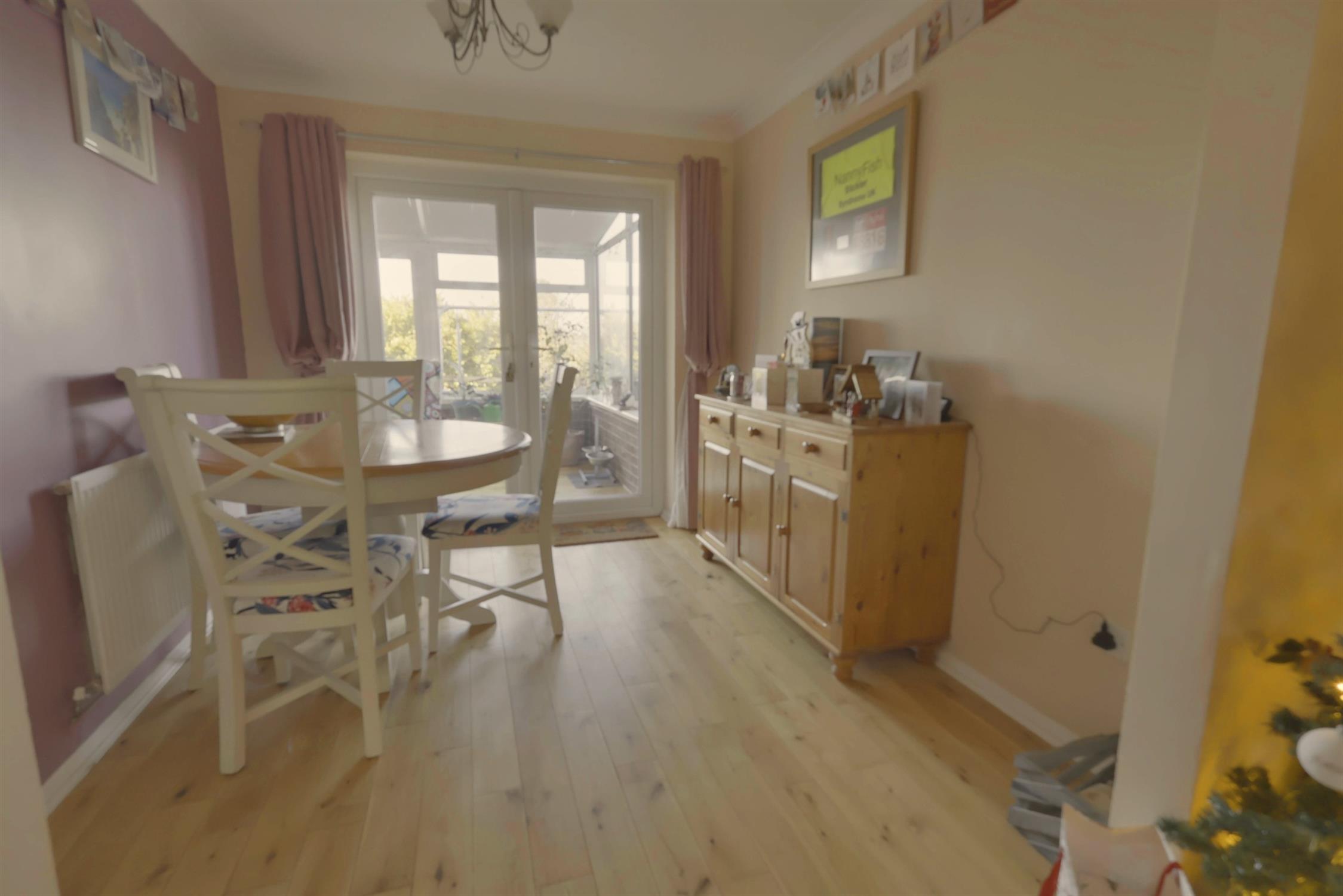 Space for a dining table and chairs, radiator, double doors to the conservatory, door to the kitchen.