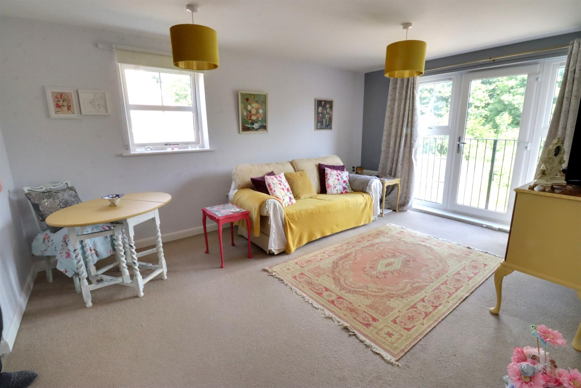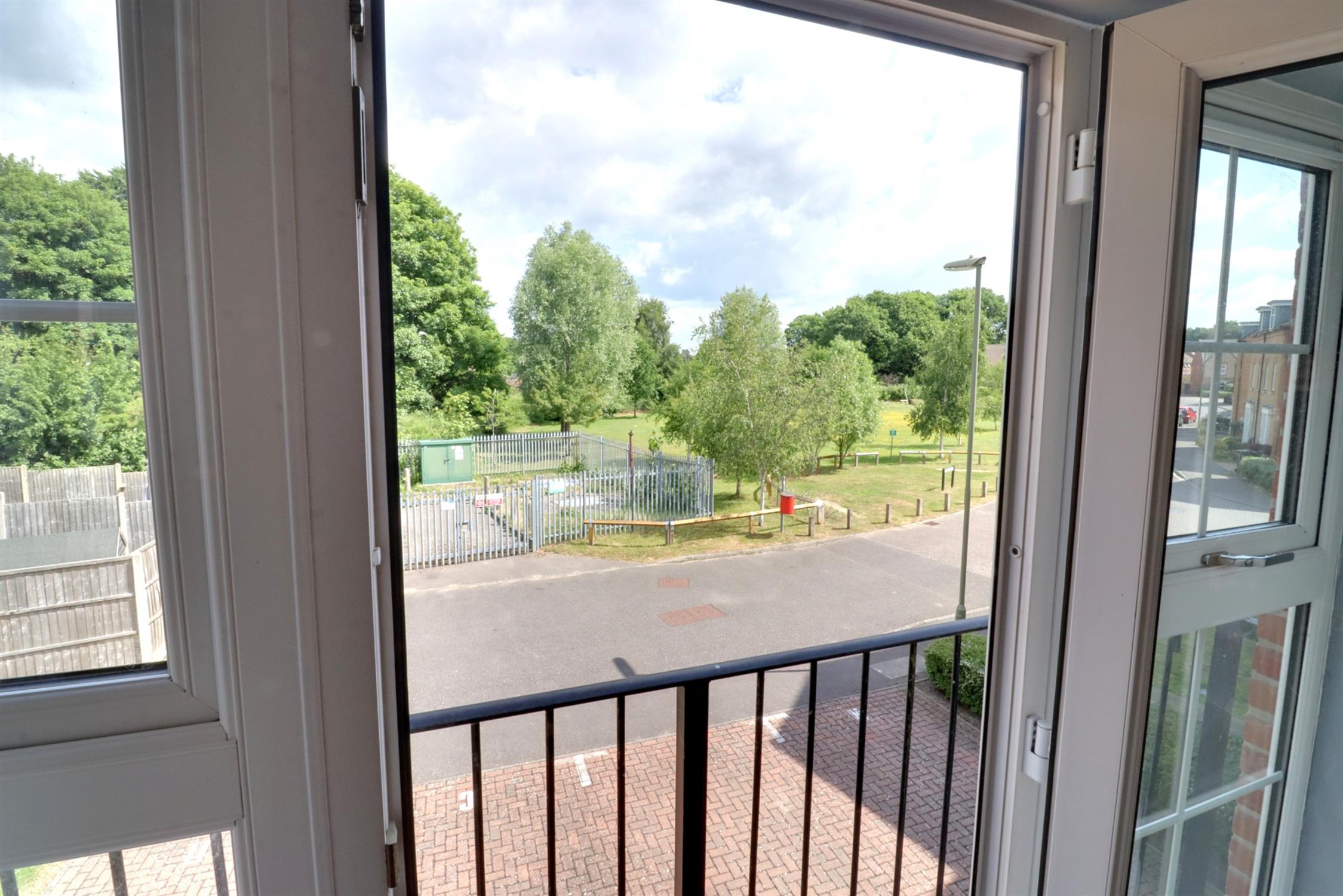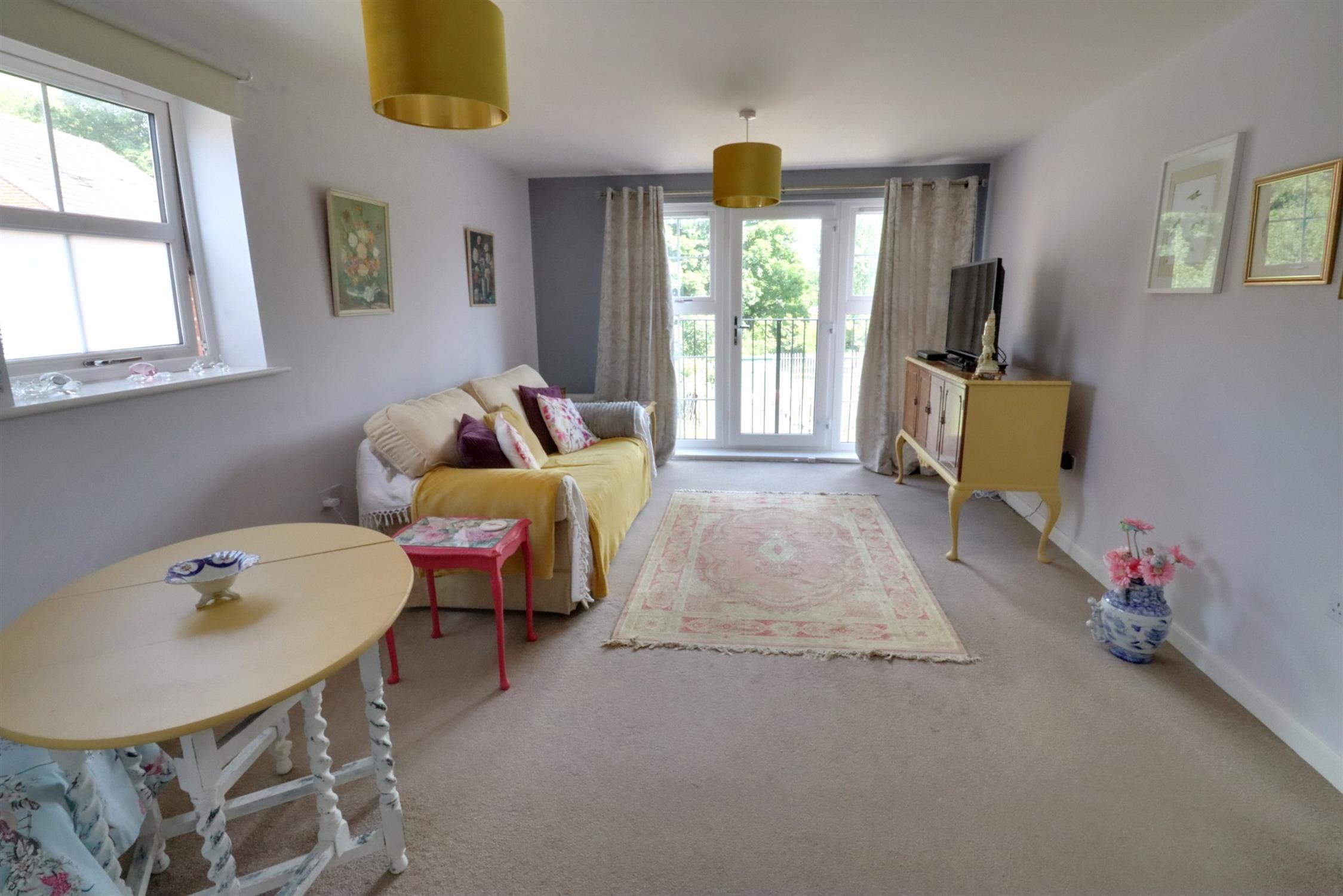 Double glazed picture windows and door to Juliet balcony with views over open green, double glazed window to side, smooth skimmed ceiling, T.V and telephone point, two radiators, archway opening to: