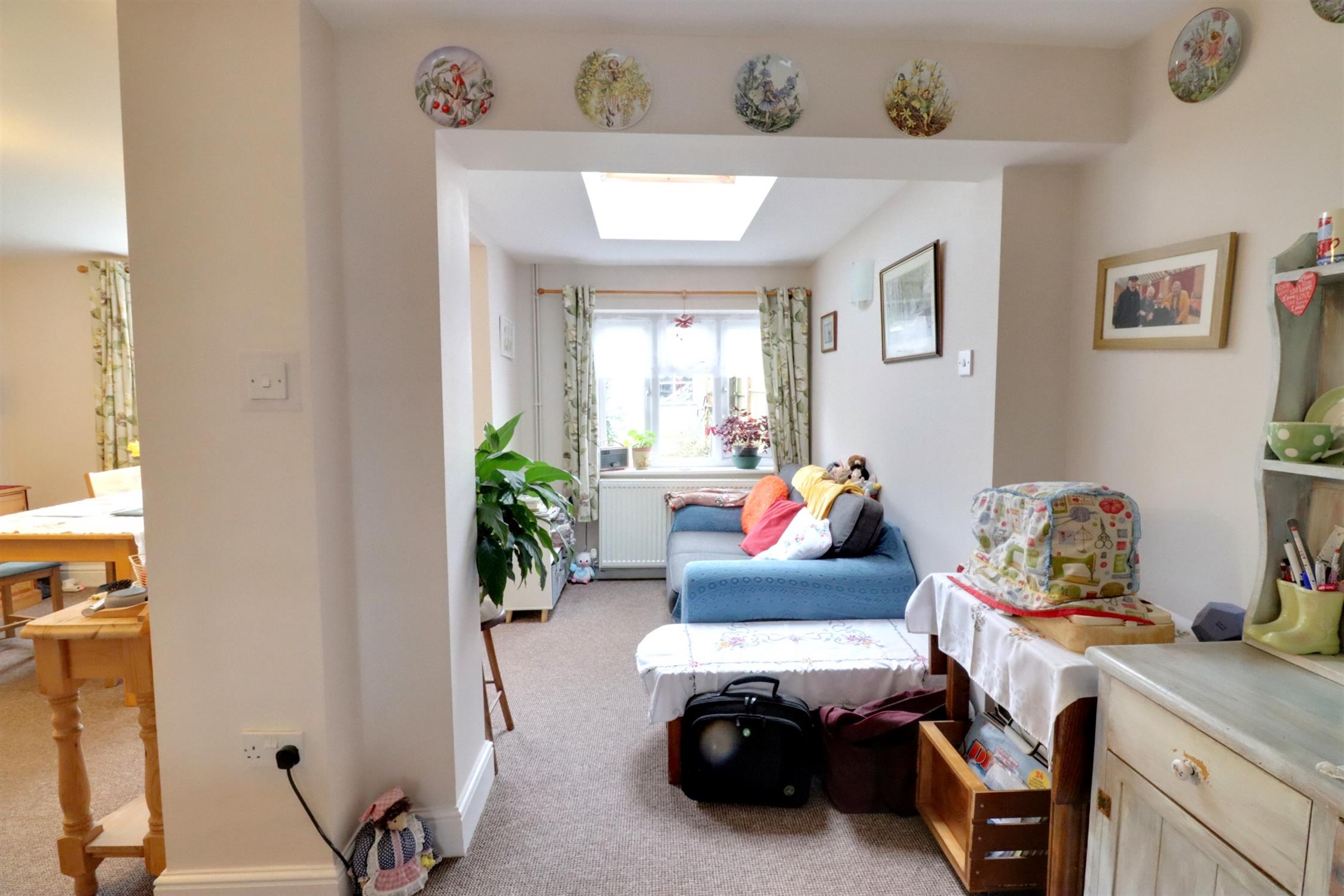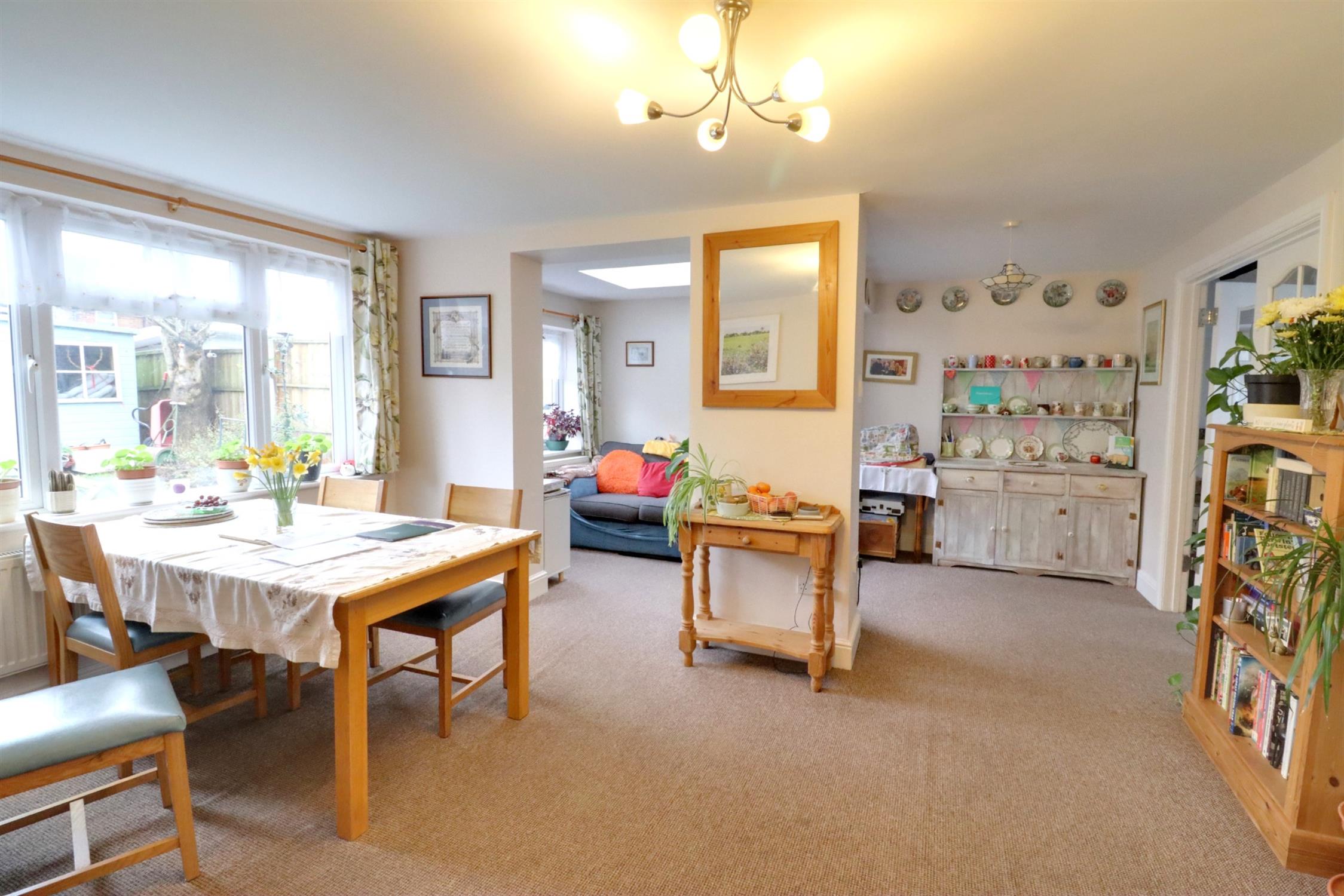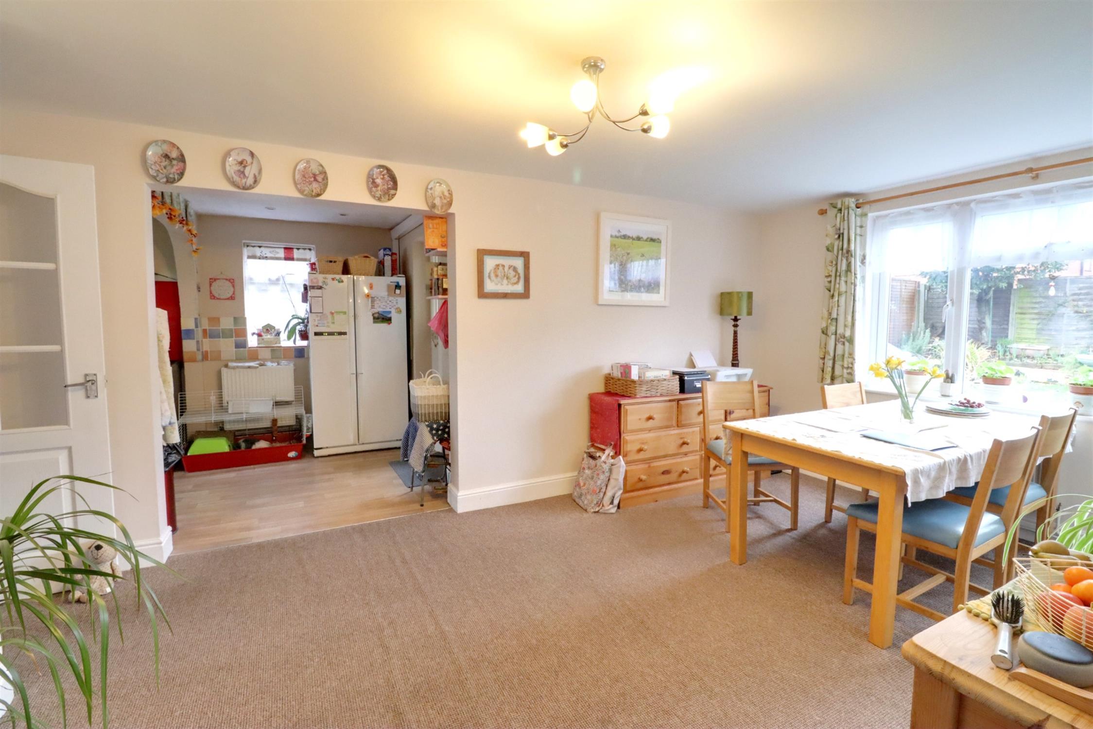 Two rear aspect double glazed windows, double glazed velux style window, two radiators, built-in understairs storage cupboard, French doors leading to the lounge, and an open arch leading to the kitchen.