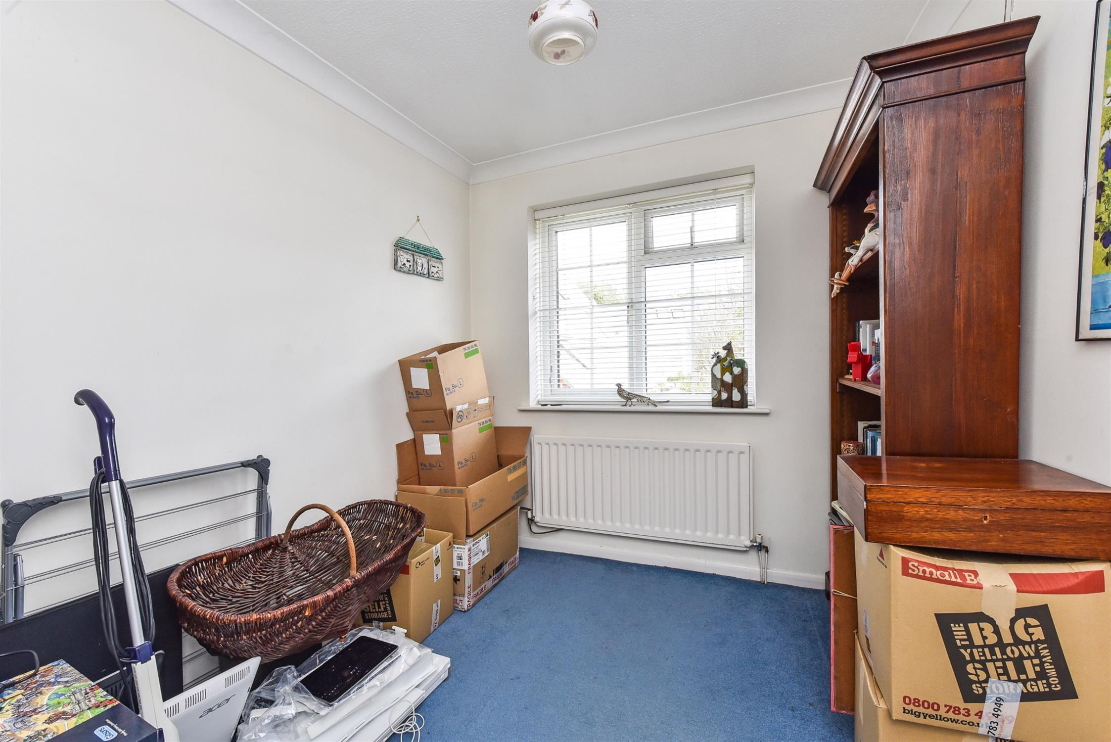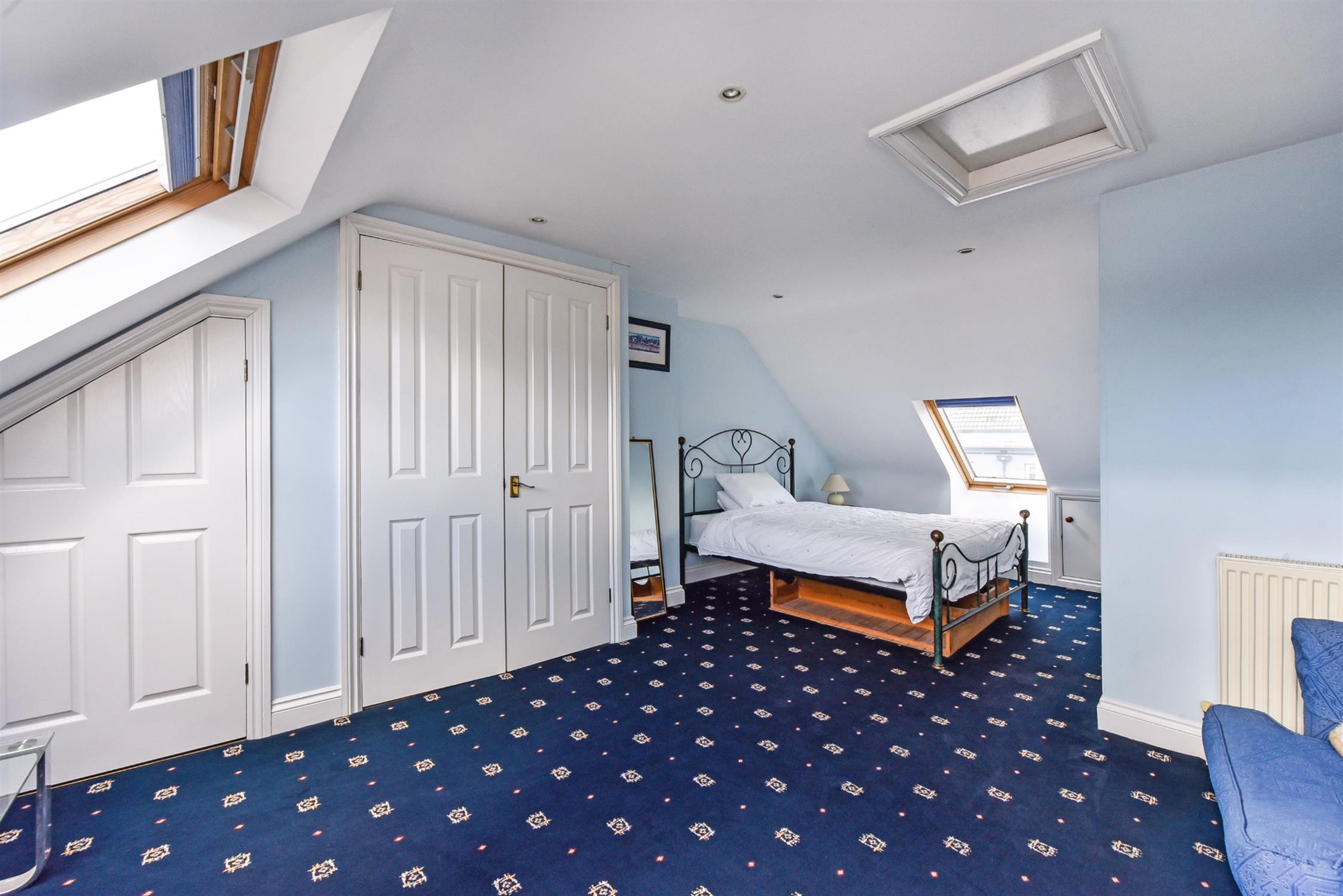 Smooth ceiling, two double glazed Velux windows to rear aspect, one double glazed Velux window to front aspect, fitted wardrobe, eaves access cupboards, radiator, fitted carpet.