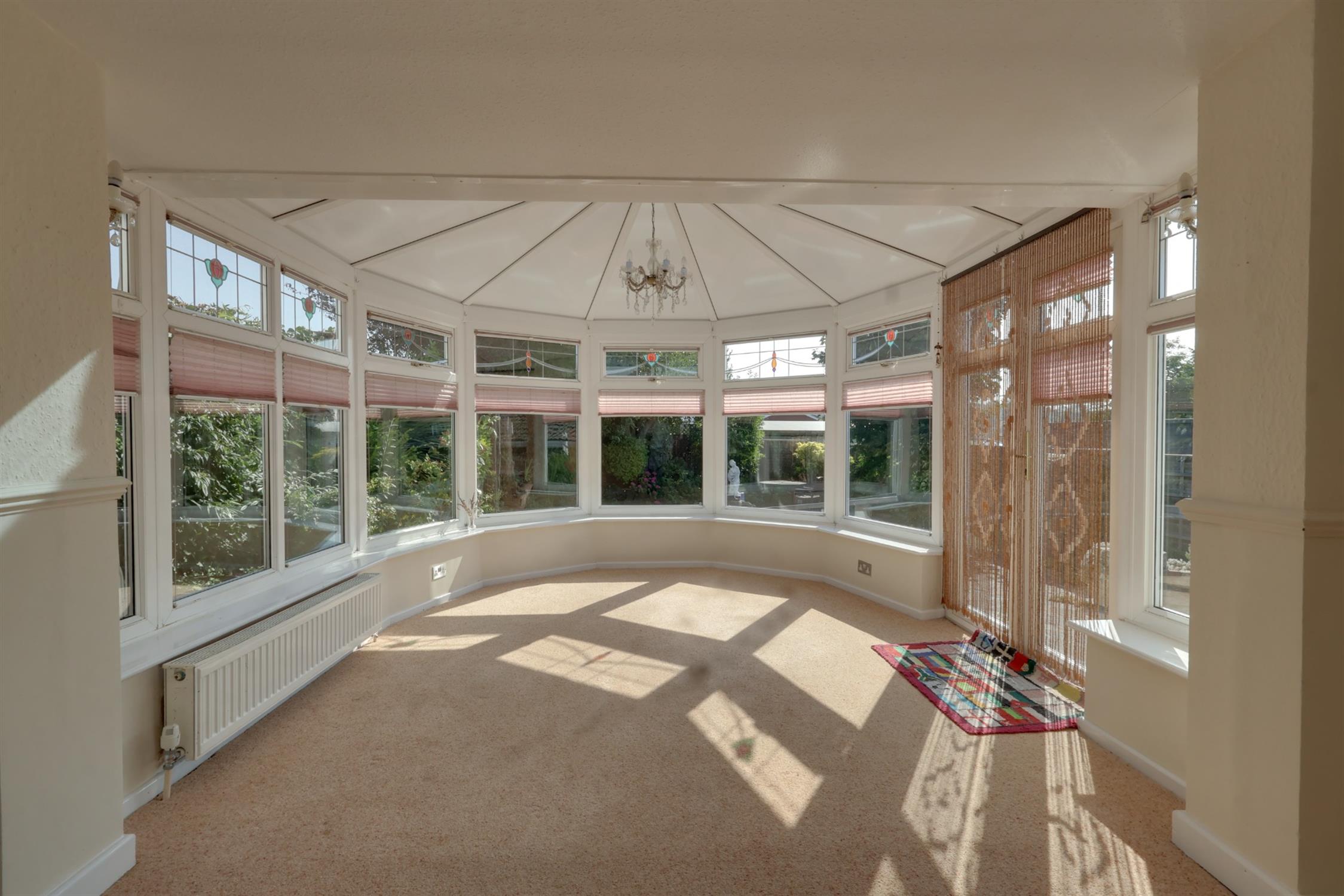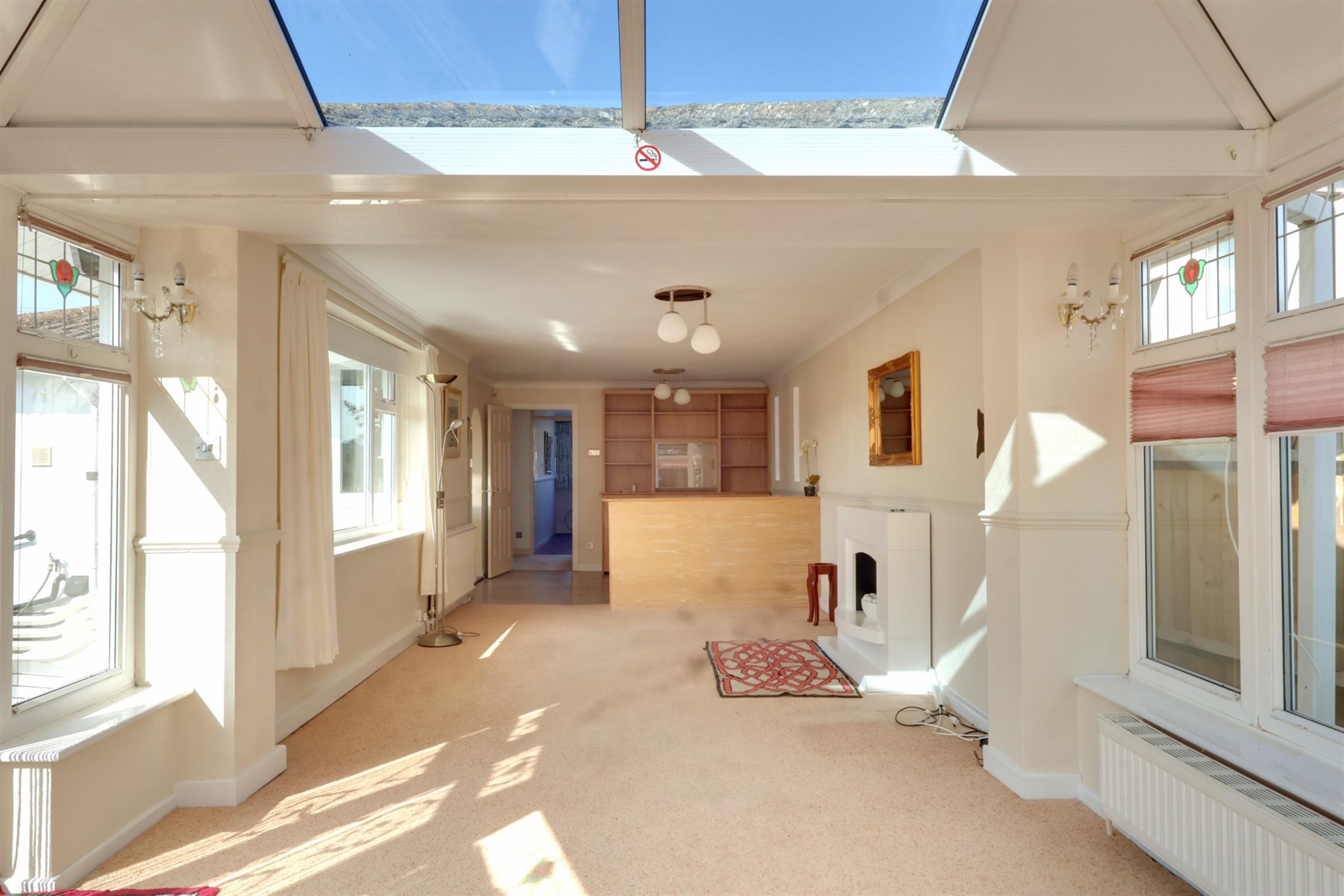 A most attractive room opening into a Victorian style sun lounge beneath a vaulted roof with double doors opening into rear garden. Double glazed window to side. Feature fireplace and surround. Two radiators. Dining area with fitted dresser.