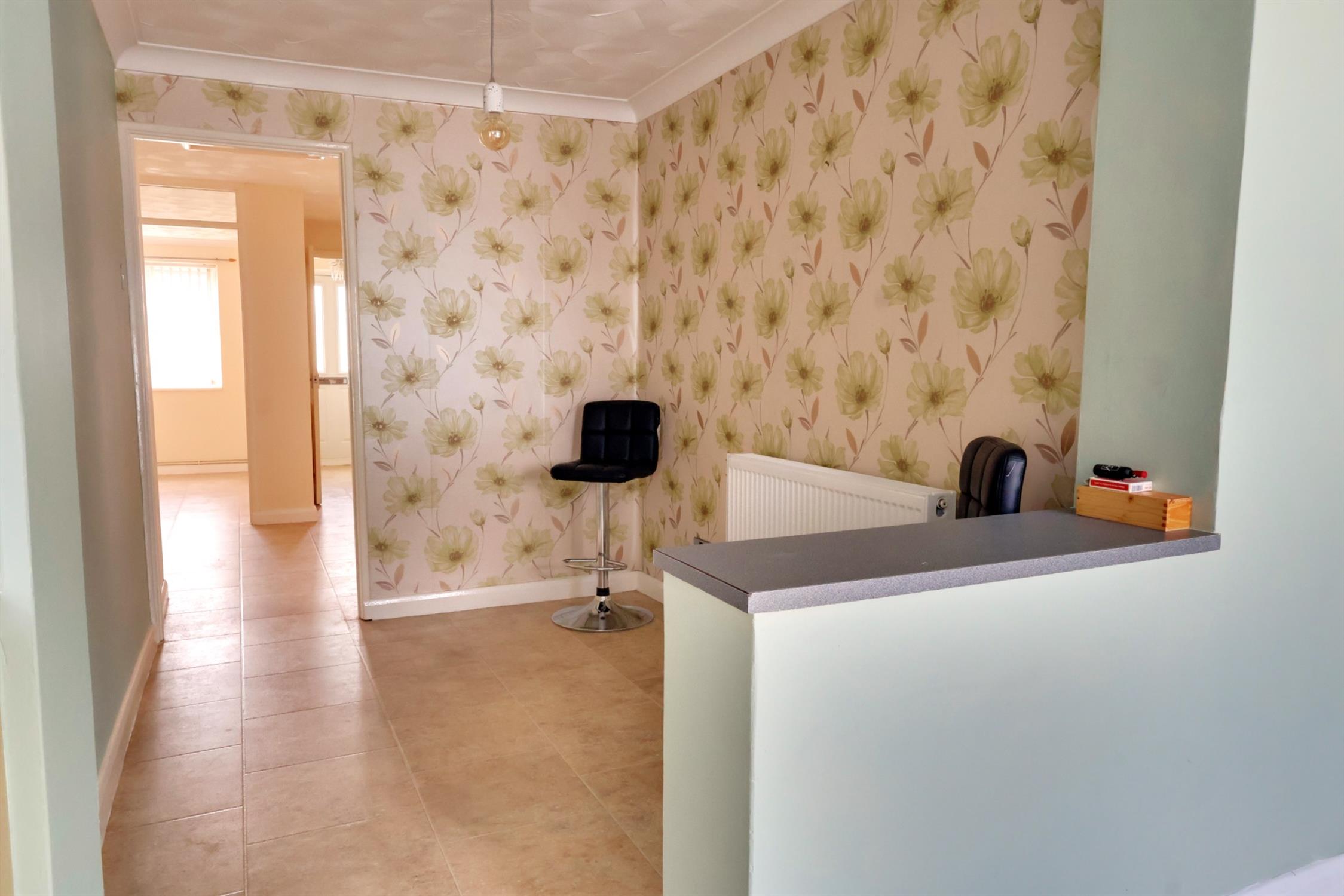 Radiator. Karndean flooring. Open arch to: