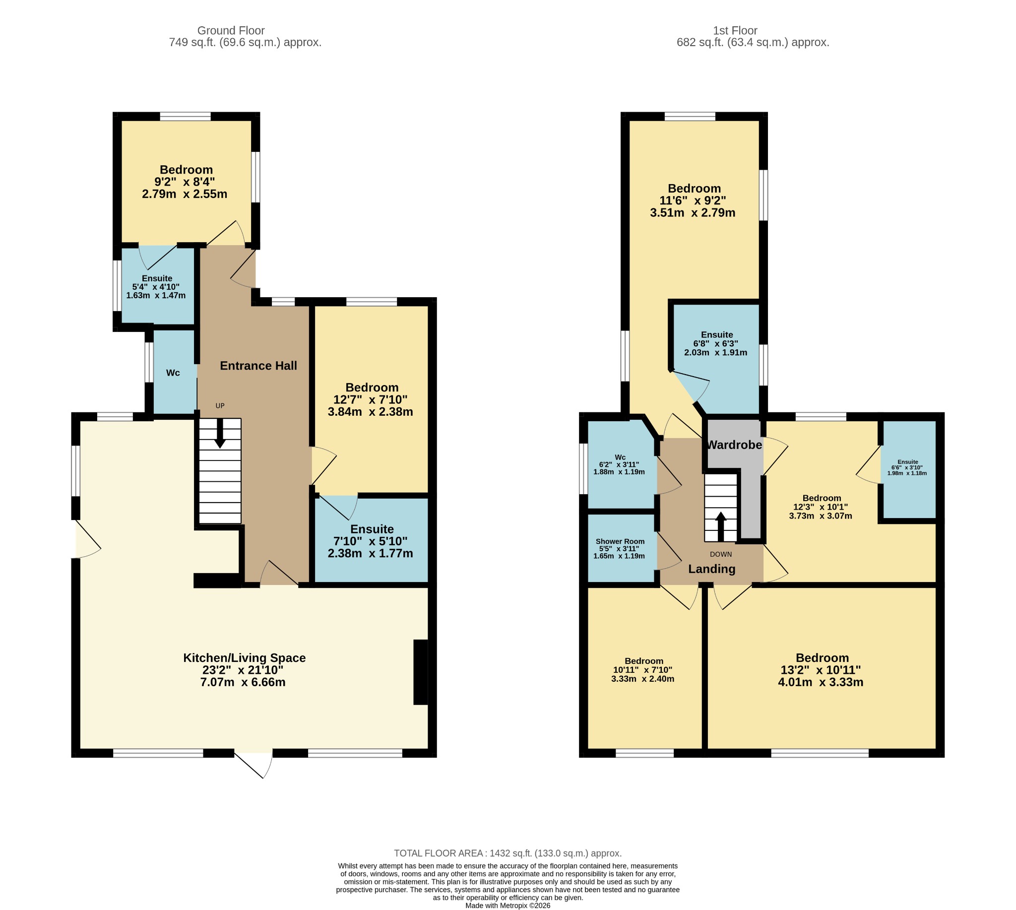 Four of the bedrooms are provided with en-suites, with two bedrooms sharing use of a shower room and there are two further, separate WC's.