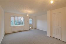 Fitted with a white suite comprising a "P" shaped bath with shower over. Built-in vanity cupboard with inset wash hand basin and enclosed cistern WC. Heated towel rail. Tiling. Double glazed window to the front aspect.