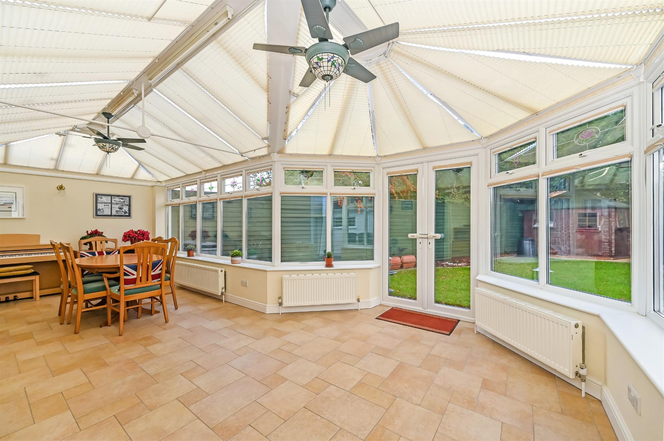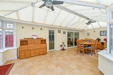 A bright and spacious conservatory with double glazed windows overlooking the rear garden. Double glazed patio doors opening to the rear garden and side patio. Three radiators. Tiled floor. Two ceiling fans.