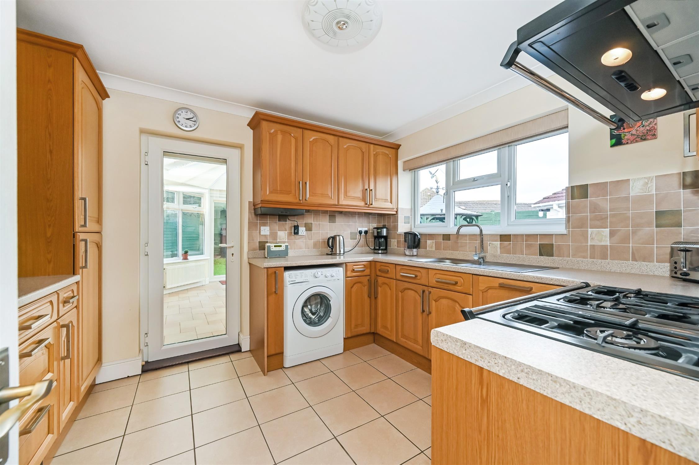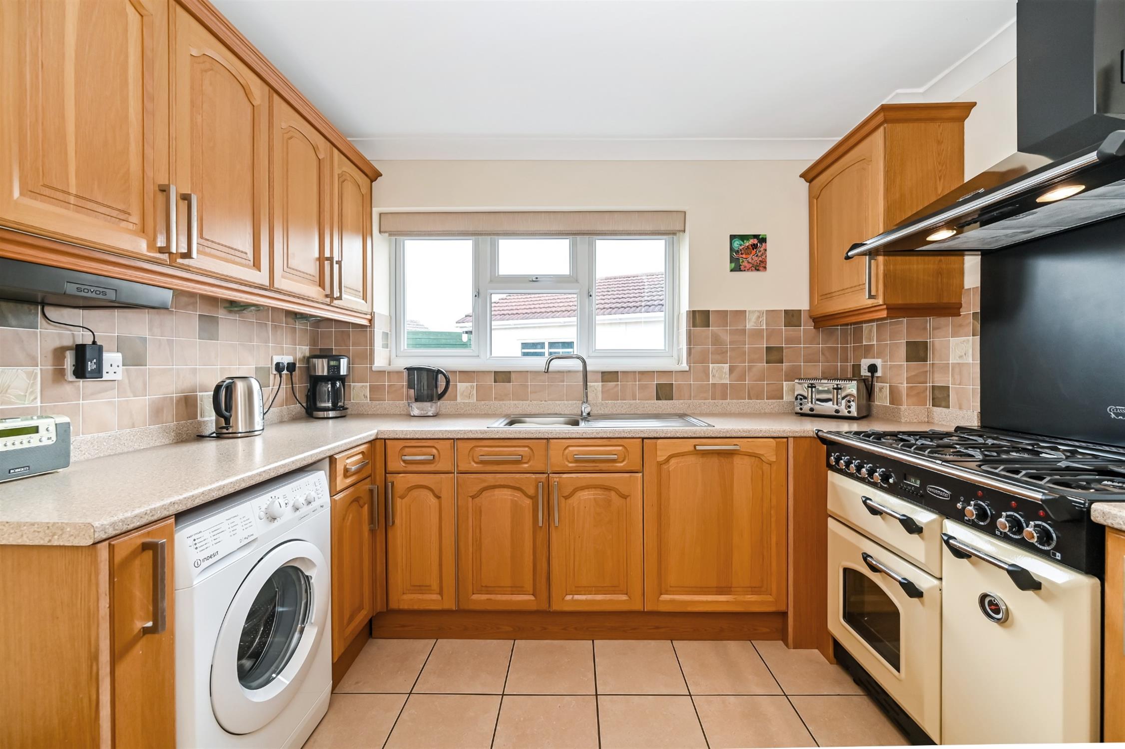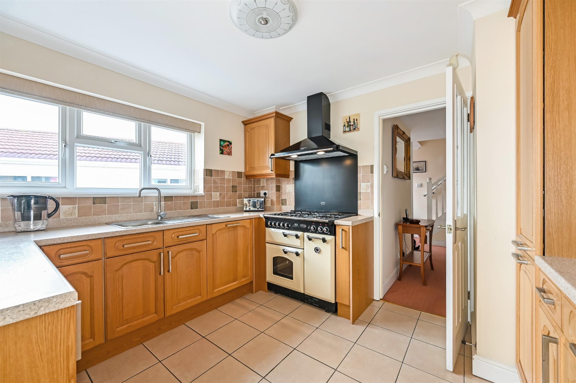 Well fitted with a range of units comprising, base cupboard, drawer and wall units with complimentary work tops. One and half bowl stainless steel sink unit. 'Classic' Rangemaster cooker with double electric oven and grill, gas hob with extractor over. Integrated fridge/freezer. Space for a washing machine and dishwasher. Integrated fan heater. Floor and wall tiles. Double glazed window to the side aspect.