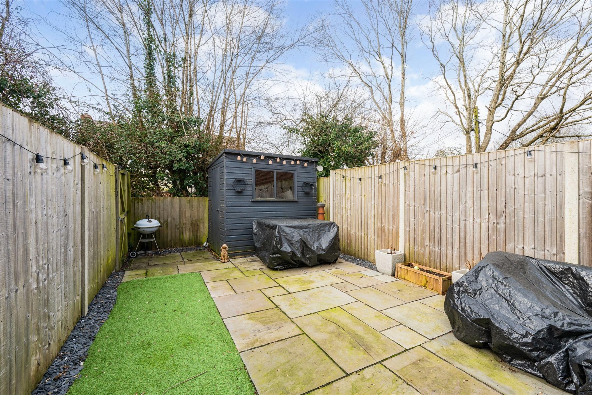 The enclosed rear garden is landscaped for low maintenance, being mainly paved with convenient rear rear access gate leading to the parking. Garden shed.