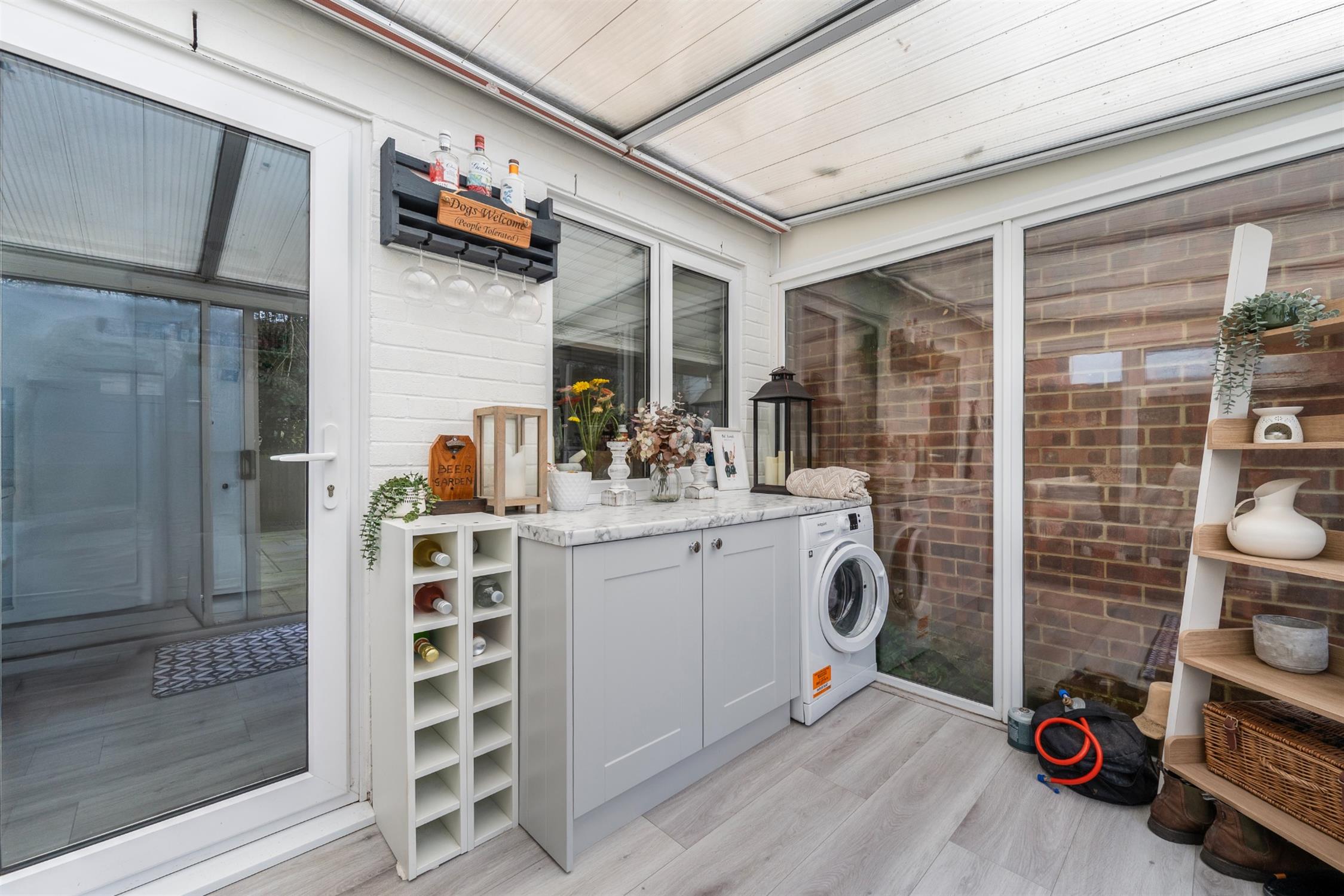 The garden room offers great additional versatile space to the ground floor and is double glazed with a sliding patio door opening onto the rear garden. There is a fitted base unit and worksurface with space under for washing machine.