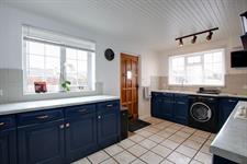 Double glazed windows to rear and side elevation. Kitchen comprising; double bowl sink unit with cupboard under. Further range of wall and base level units with roll edge work surfaces over and splashback tiling. Built-in four ring ceramic hob with cooker hood over and electric oven beneath. Plumbing for washing machine. Tiled flooring. Door to family room and dining room.