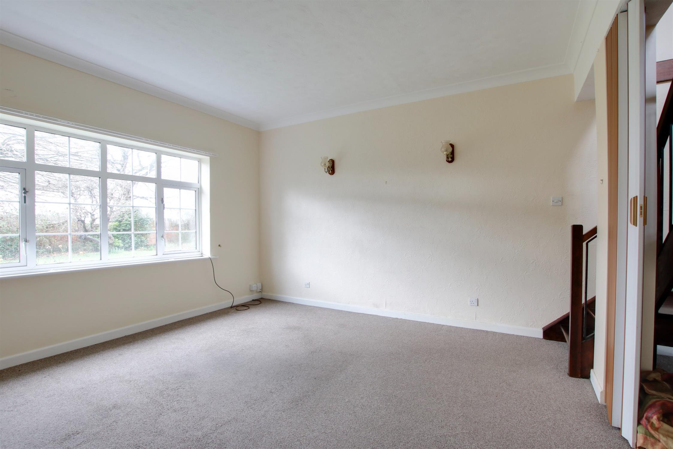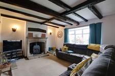 Double glazed bow window to front elevation. Chimney breast with feature stone fireplace with inset multi-fuel stove. Beamed ceiling and feature exposed brick walls. Door to: