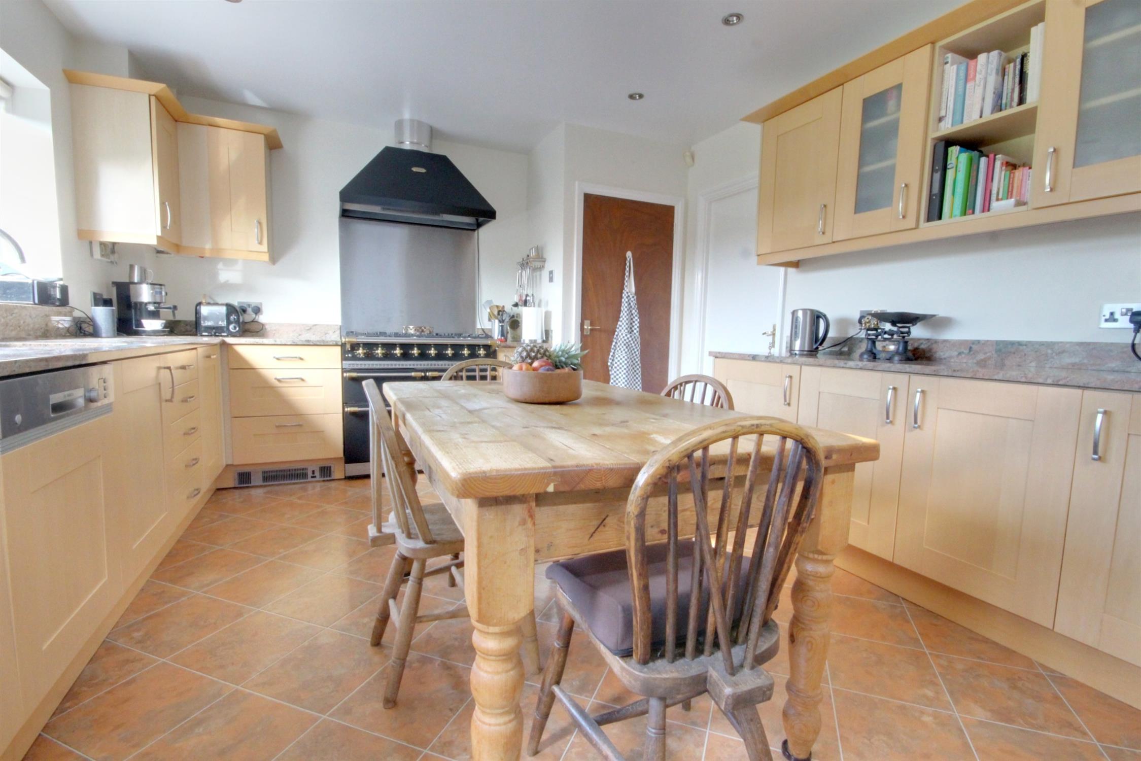 Five ring range style gas cooker to remain with extractor hood over, integral dishwasher, inset stainless steel sink, cupboard housing the boiler, rear and side aspect double glazed windows and door to the garage, rear aspect double glazed door to the rear garden.